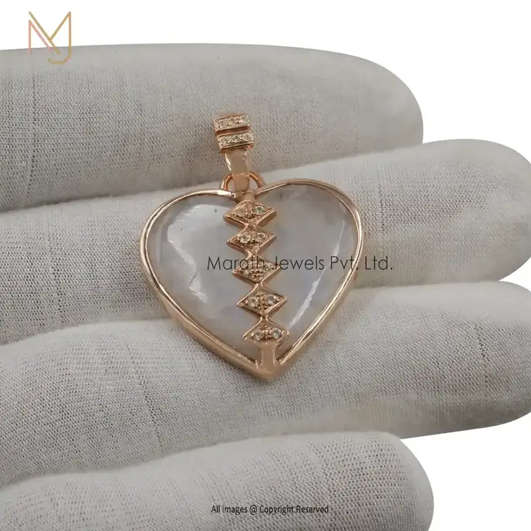 925 Silver Rose Gold Moonstone & White Topaz Heart Pendant Jewelry Supplier