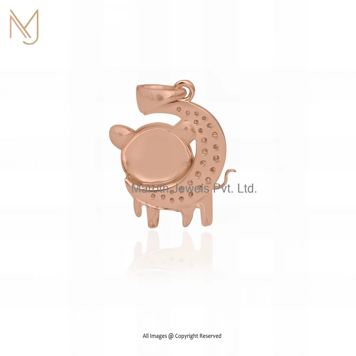 925 Silver Rose Gold Plated Moissanite Moon Pig Pendant Custom Jewelry