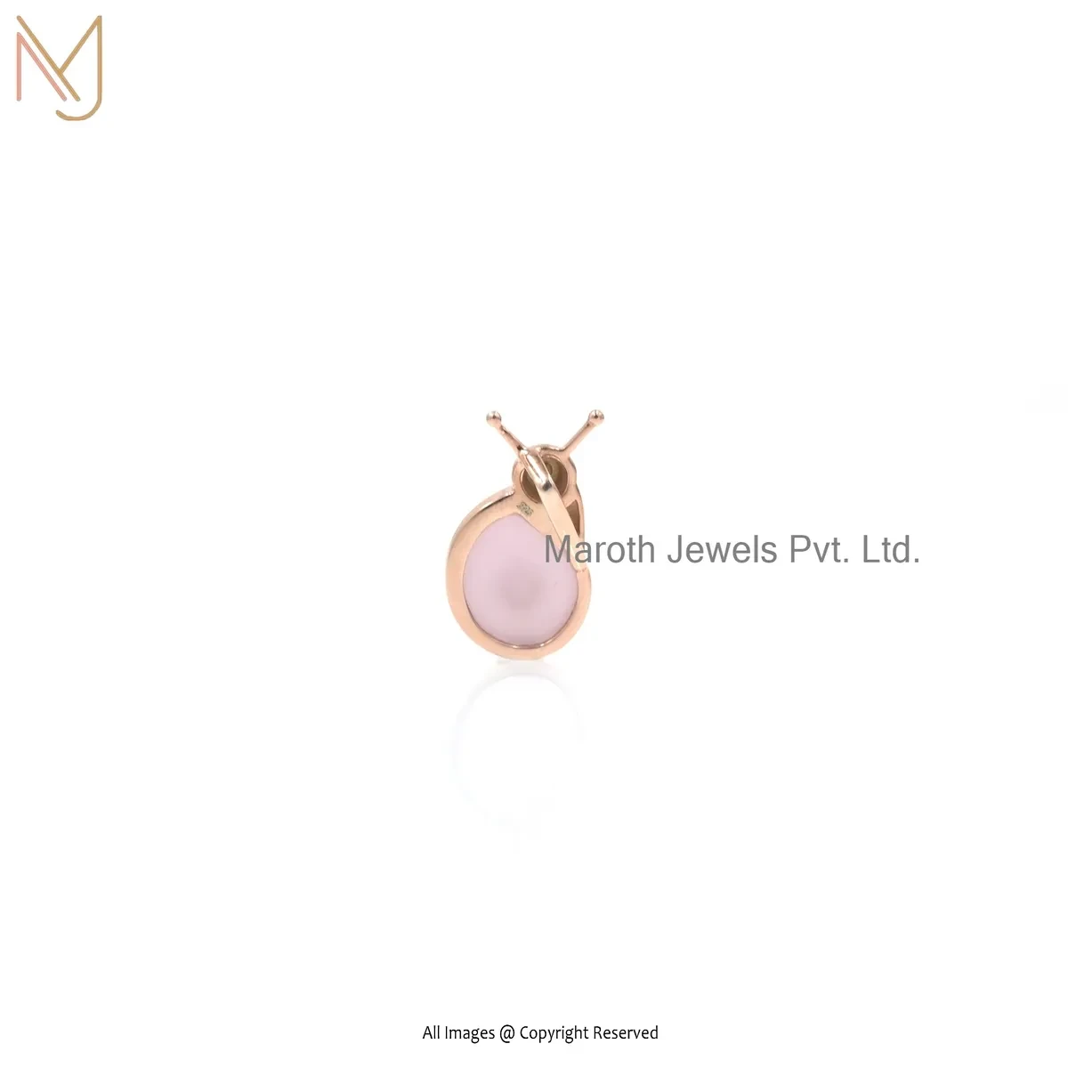 925 Silver Rose Gold Plated Rose Quartz Gemstone Snail Charm Pendant Custom Jewelry