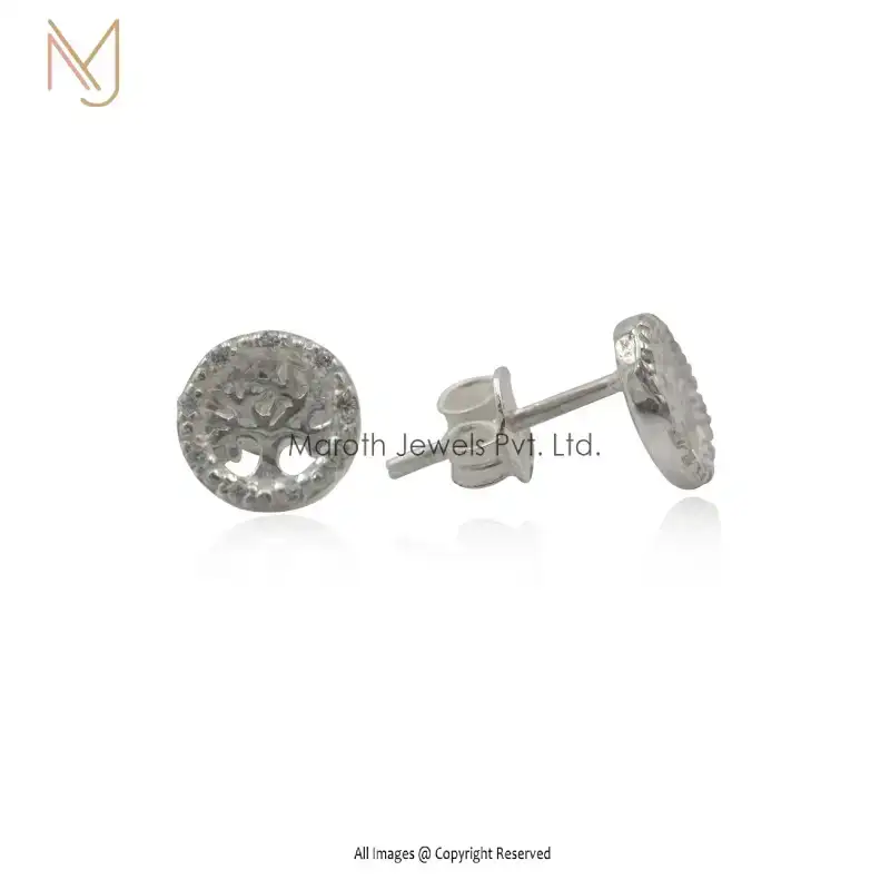 925 Silver Tree Circle Stud Earrings Handmade Jewelry Manufacturer