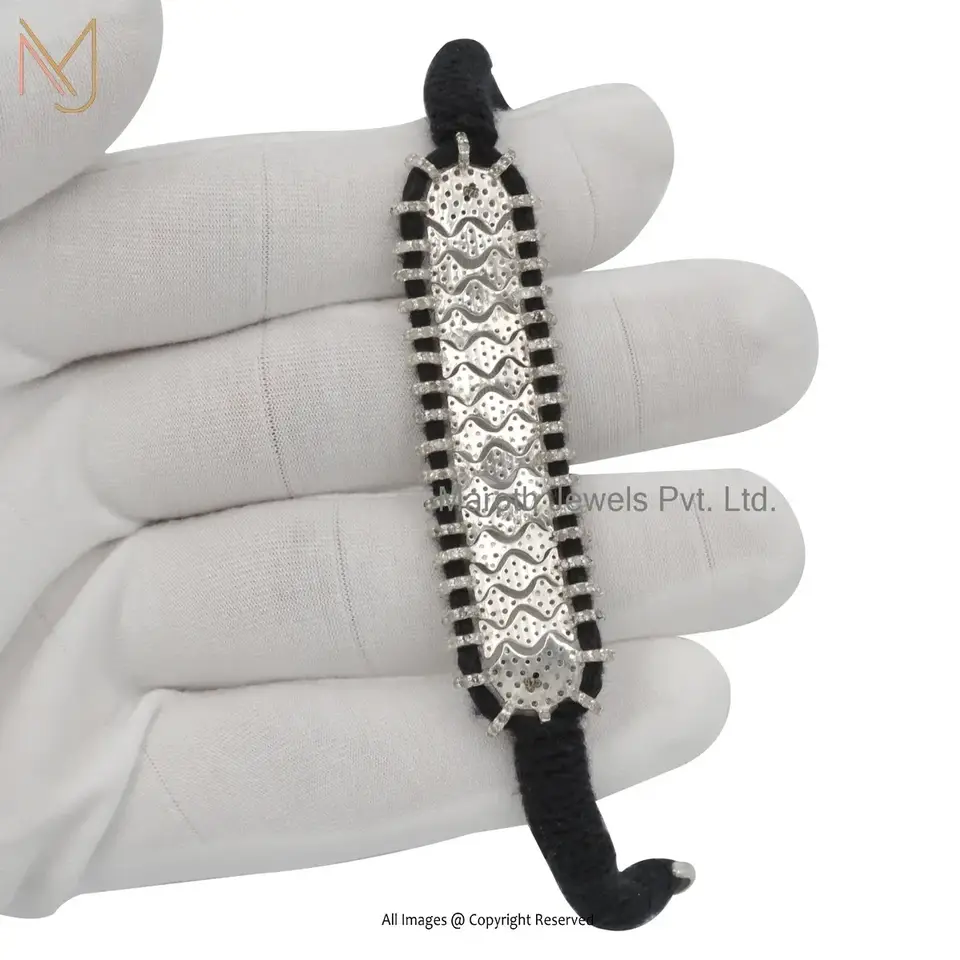 925 Silver White Gold Plated Diamond Macrame Bracelet Custom Jewelry