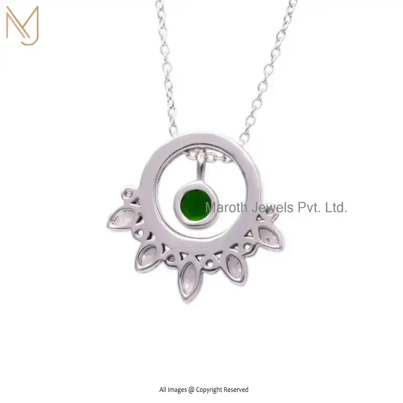 925 Silver White Gold Plated Emerald And Cubic Zircon Round Shape Forest Flower Pendant USA