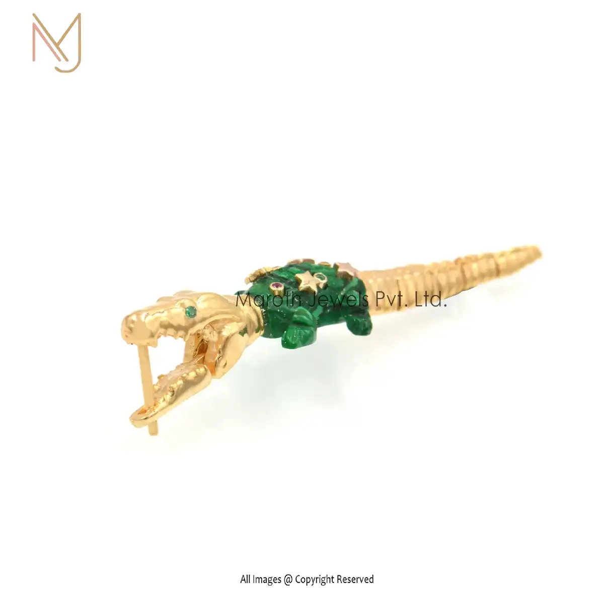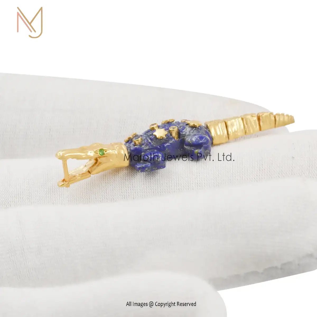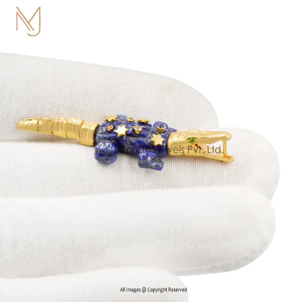 925 Silver Yellow Gold Black Onyx Crocodile Multi Gemstone Emerald Pendant Manufacturer