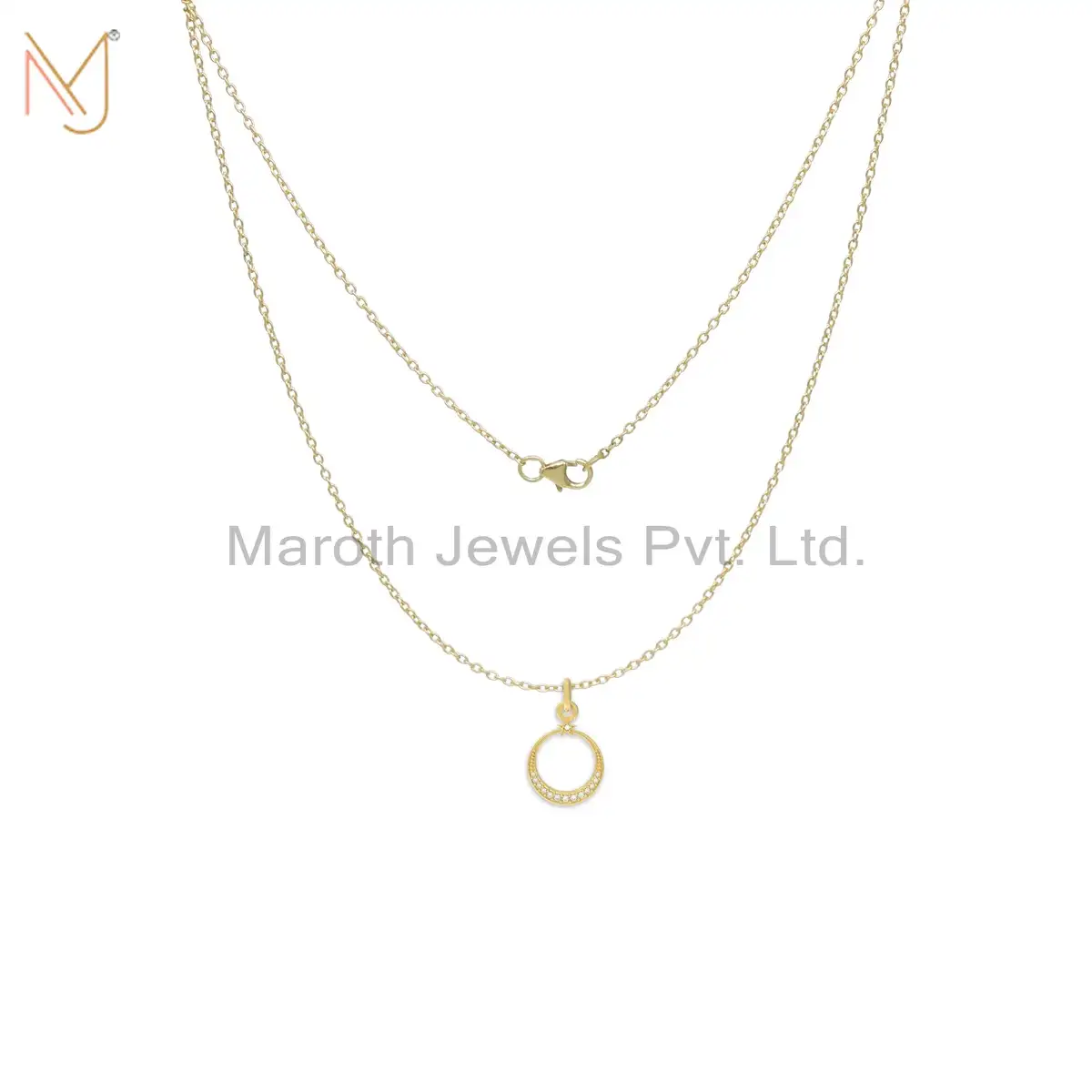 925 Silver Yellow Gold Diamond Star Moon Pendant Jewelry Supplier