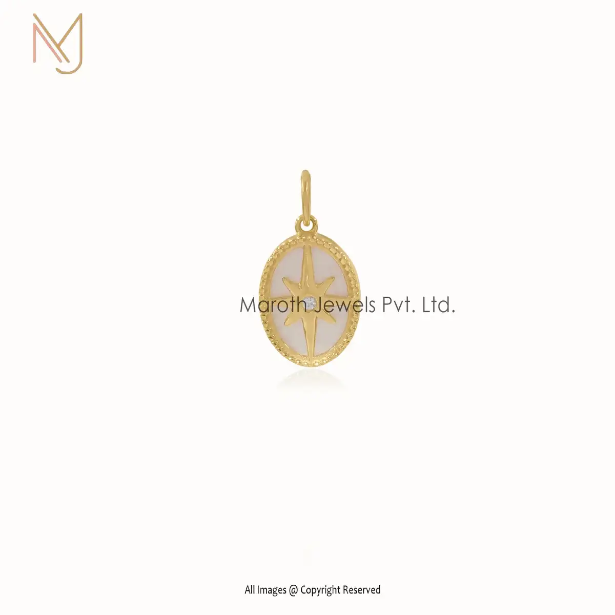 925 Silver Yellow Gold Moissanite & Lapiz lazuli Gemstone Star Oval Pendant Custom Jewelry
