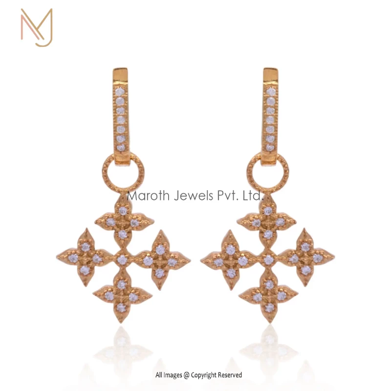 925 Silver Yellow Gold Pave Cubic Zircon Hoop Drop Earrings Manufacturer