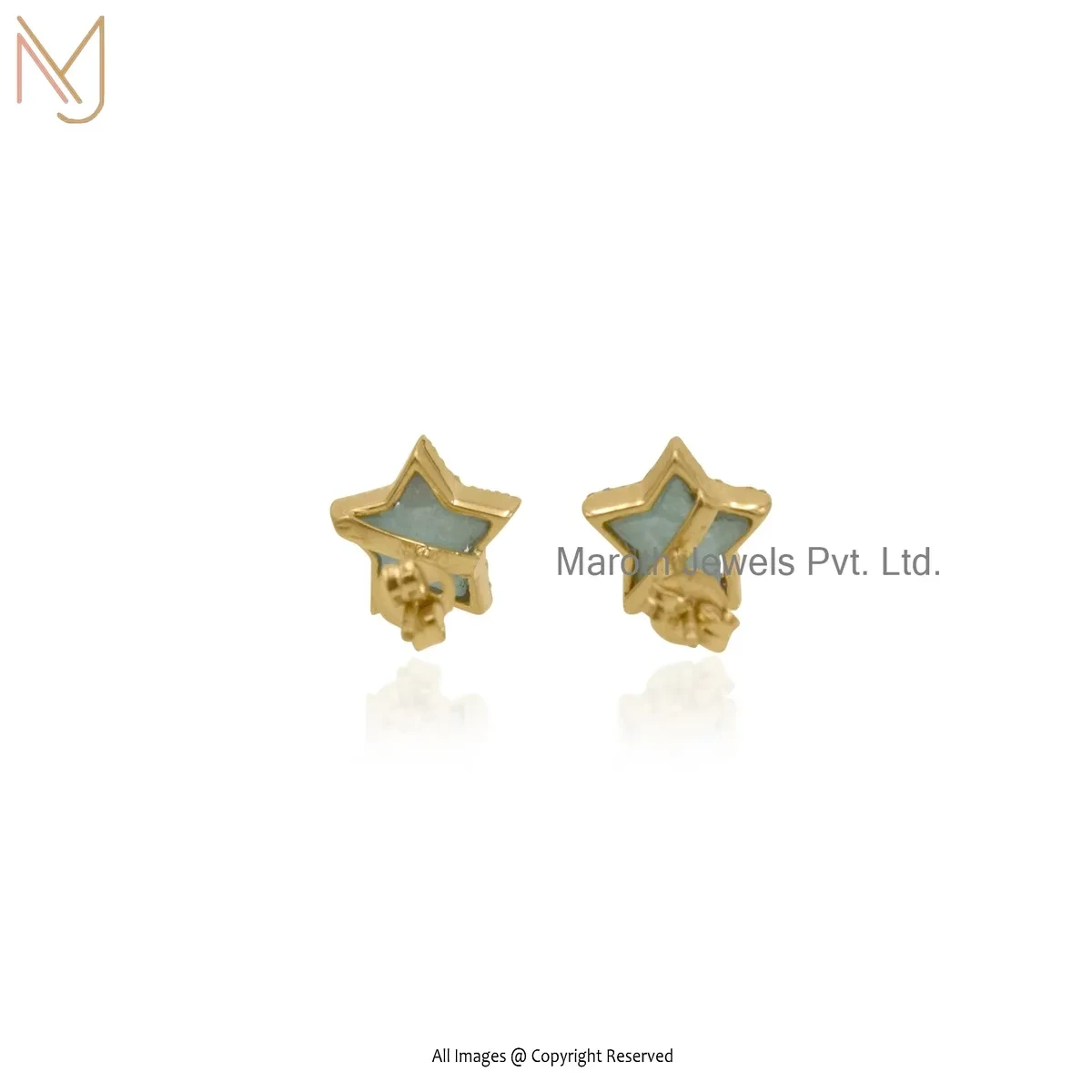 925 Silver Yellow Gold Plated Amazonite And Cubic Zircon Star Earring Jewelry Supplier