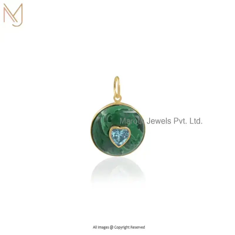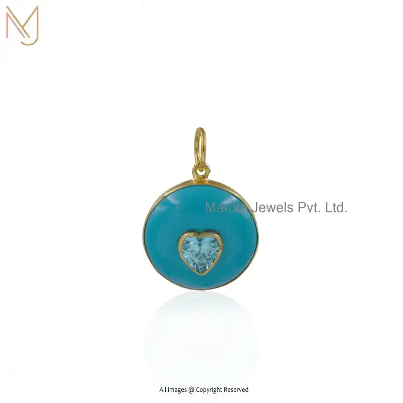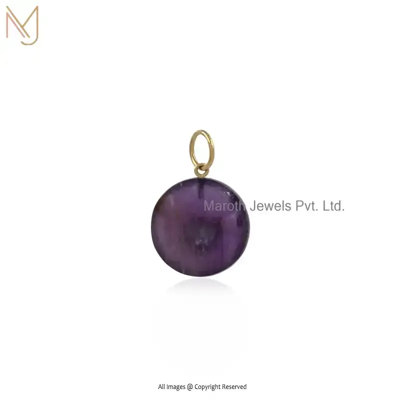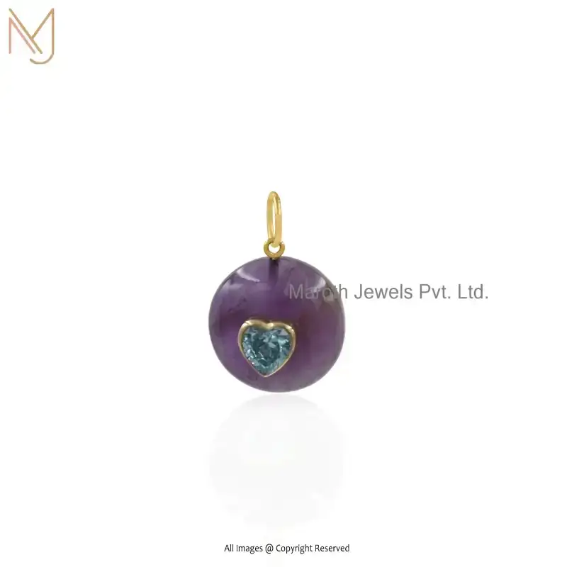 925 Silver Yellow Gold Plated Amethyst & Cubic Zircon Ball Shape Heart Pendant Custom Jewelry