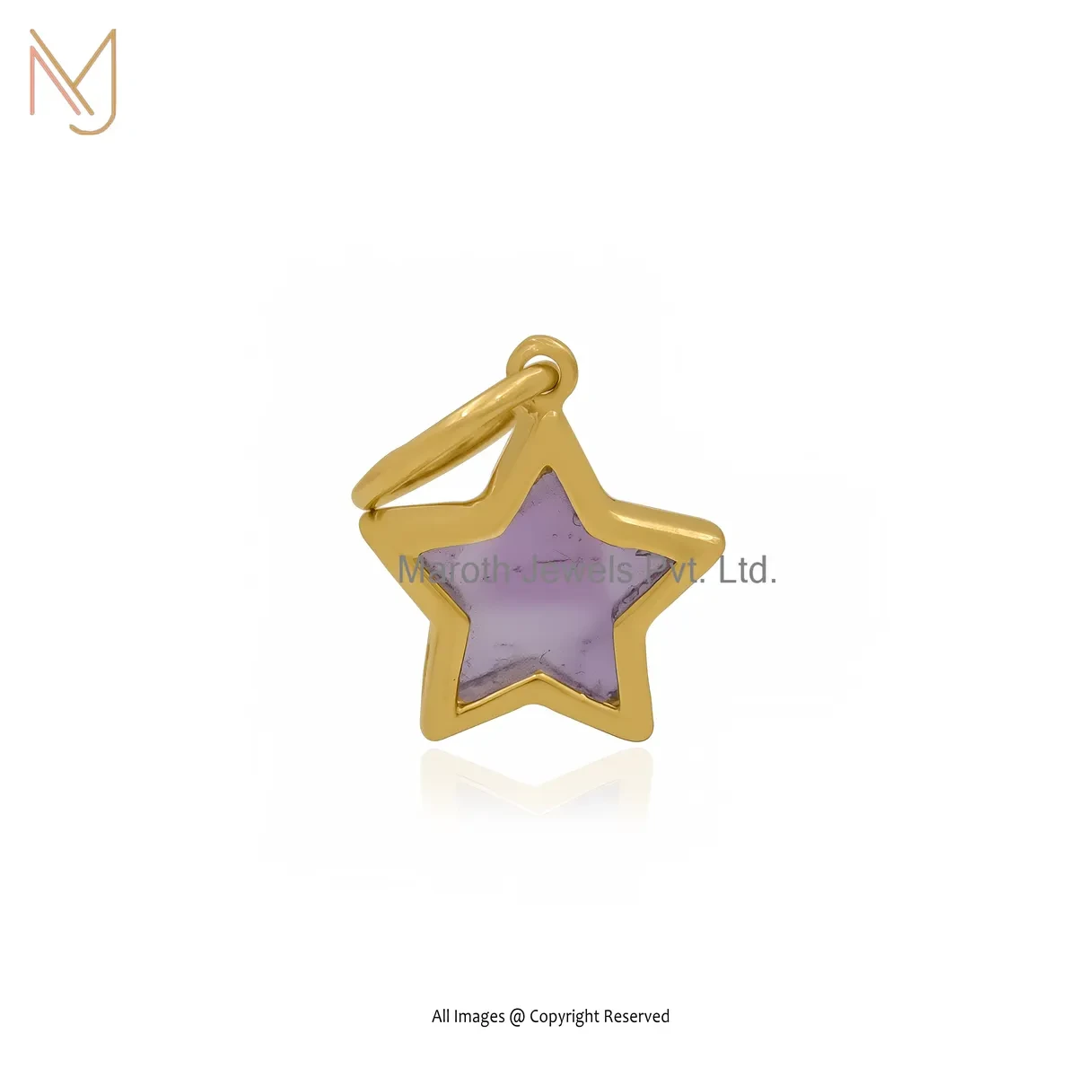 925 Silver Yellow Gold Plated Amethyst Gemstone Star Pendant Custom Jewelry