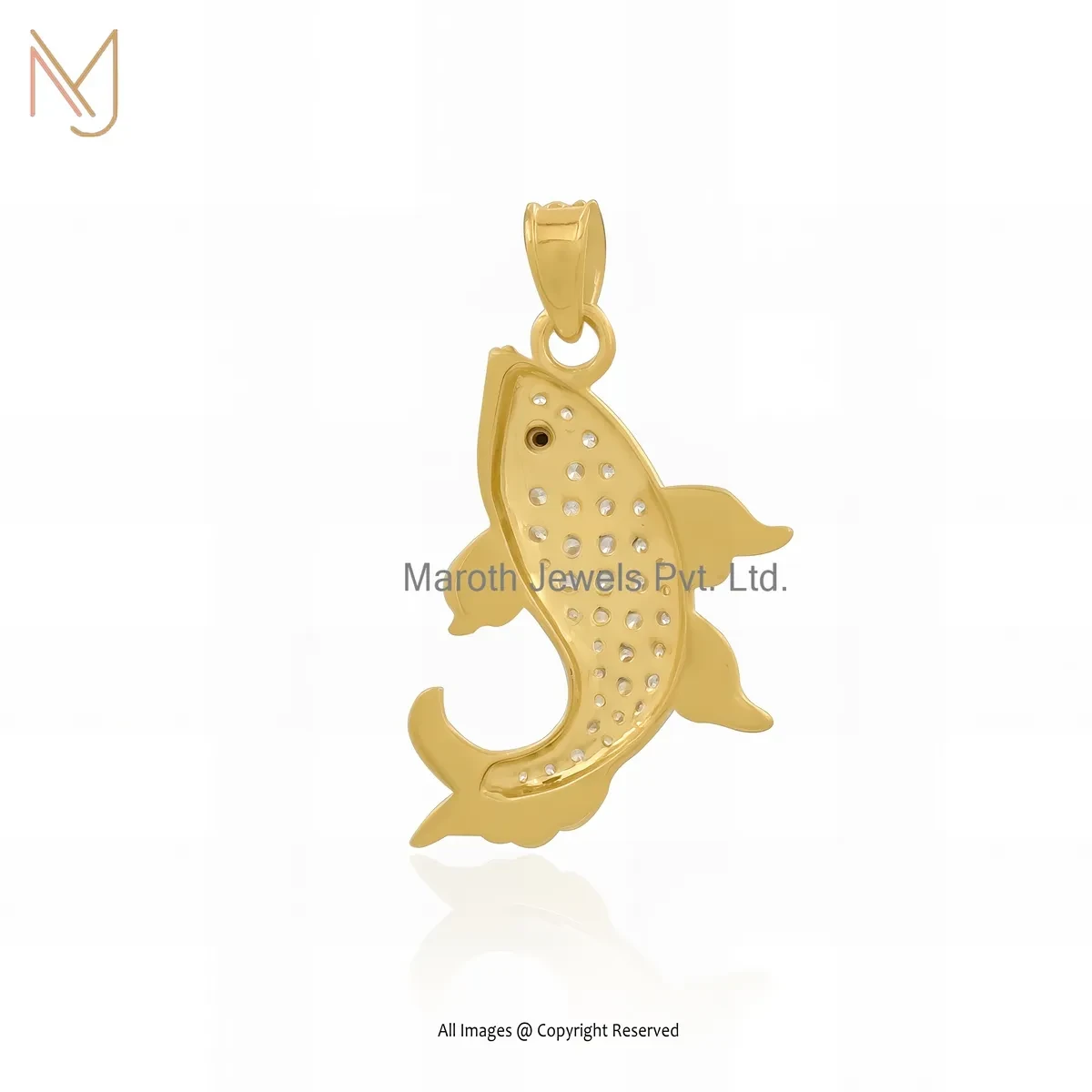 925 Silver Yellow Gold Plated Black Cubic Zircon Fish Pendant Manufacturer