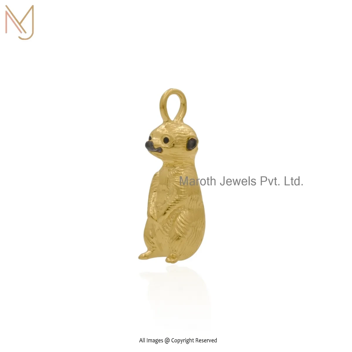 925 Silver Yellow Gold Plated Black Enamel Meerkat Animal Pendant Custom Jewelry