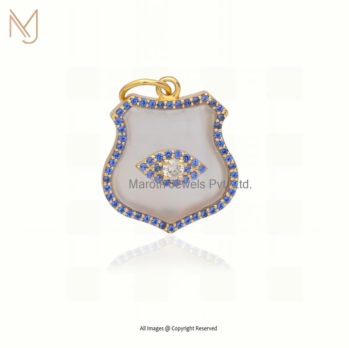 925 Silver Yellow Gold Plated Black Onyx And Diamond, Blue Sapphire Evil Eye Charm Pendant USA