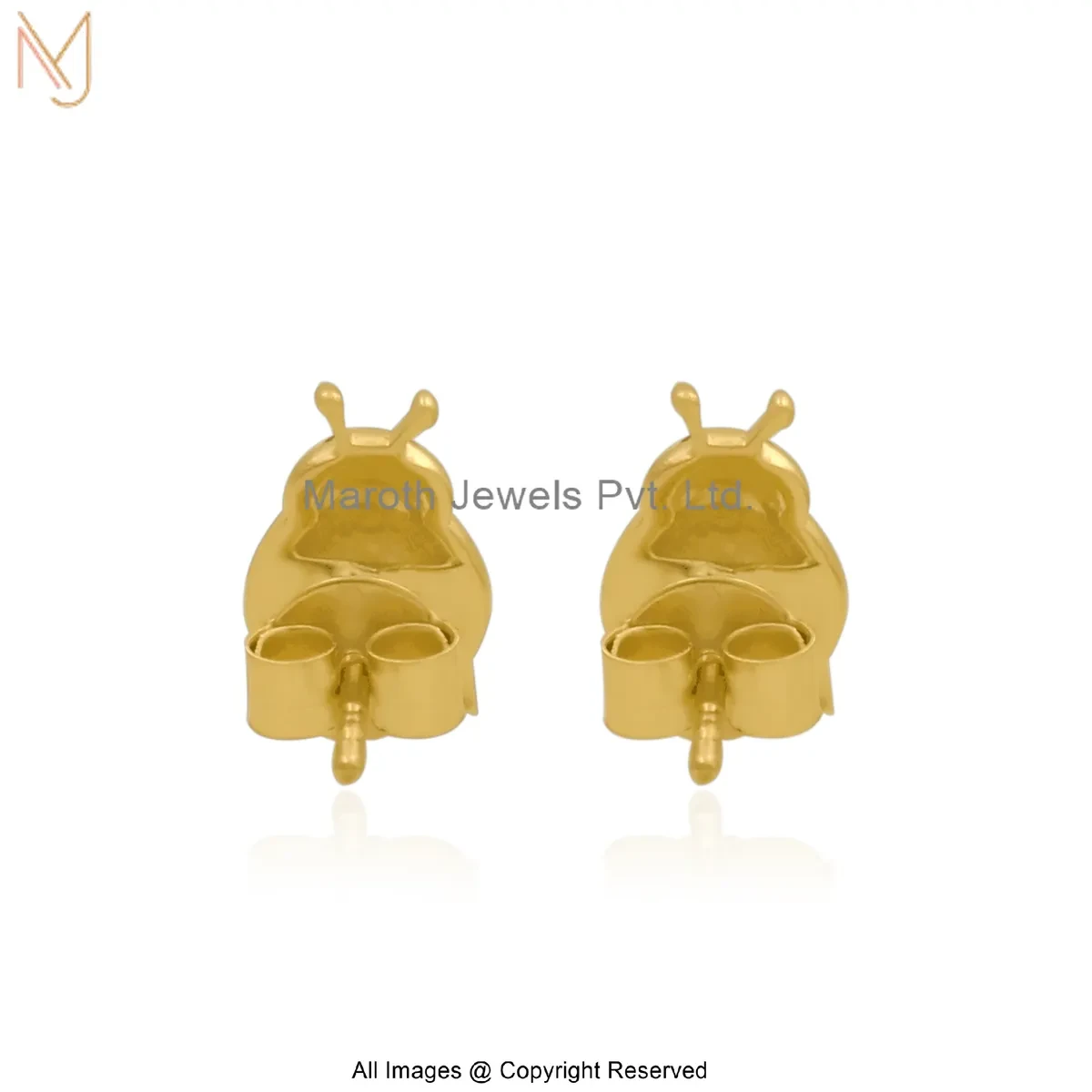 925 Silver Yellow Gold Plated Blue Cubic Zircon Ladybug Stud Earring Custom Jewelry