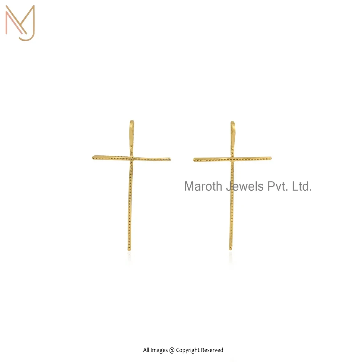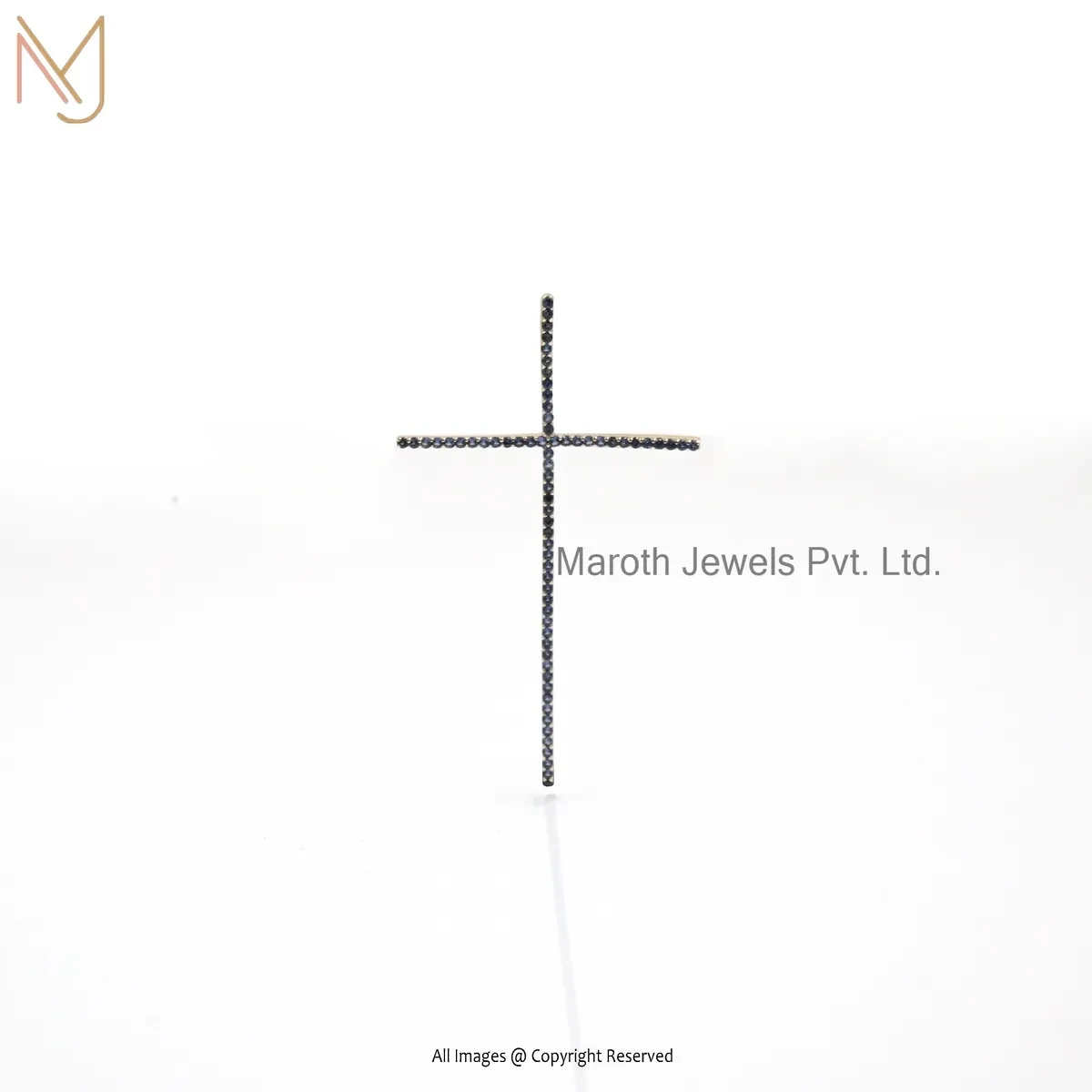 925 Silver Yellow Gold Plated Blue Sapphire Cross Pendant Jewelry Supplier