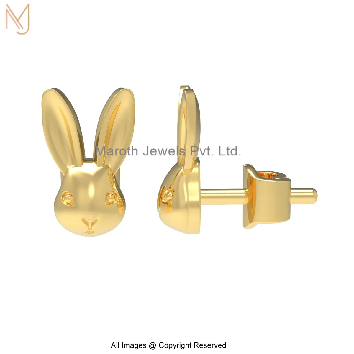925 Silver Yellow Gold Plated Bunny Head Stud Earrings Manufacturer