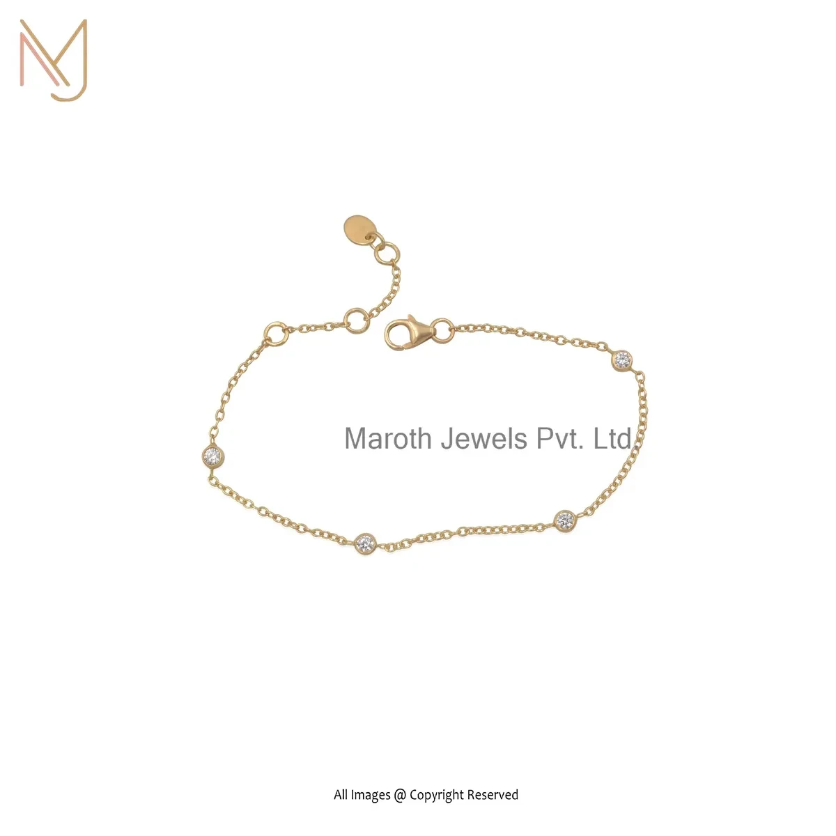 925 Silver Yellow Gold Plated Cubic Zicon Brilliant Round Cut Bracelet Jewelry Supplier