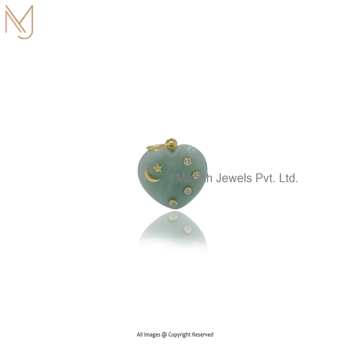 925 Silver Yellow Gold Plated Cubic Zircon & Amazonite Puffy Heart Pendant Custom Jewelry