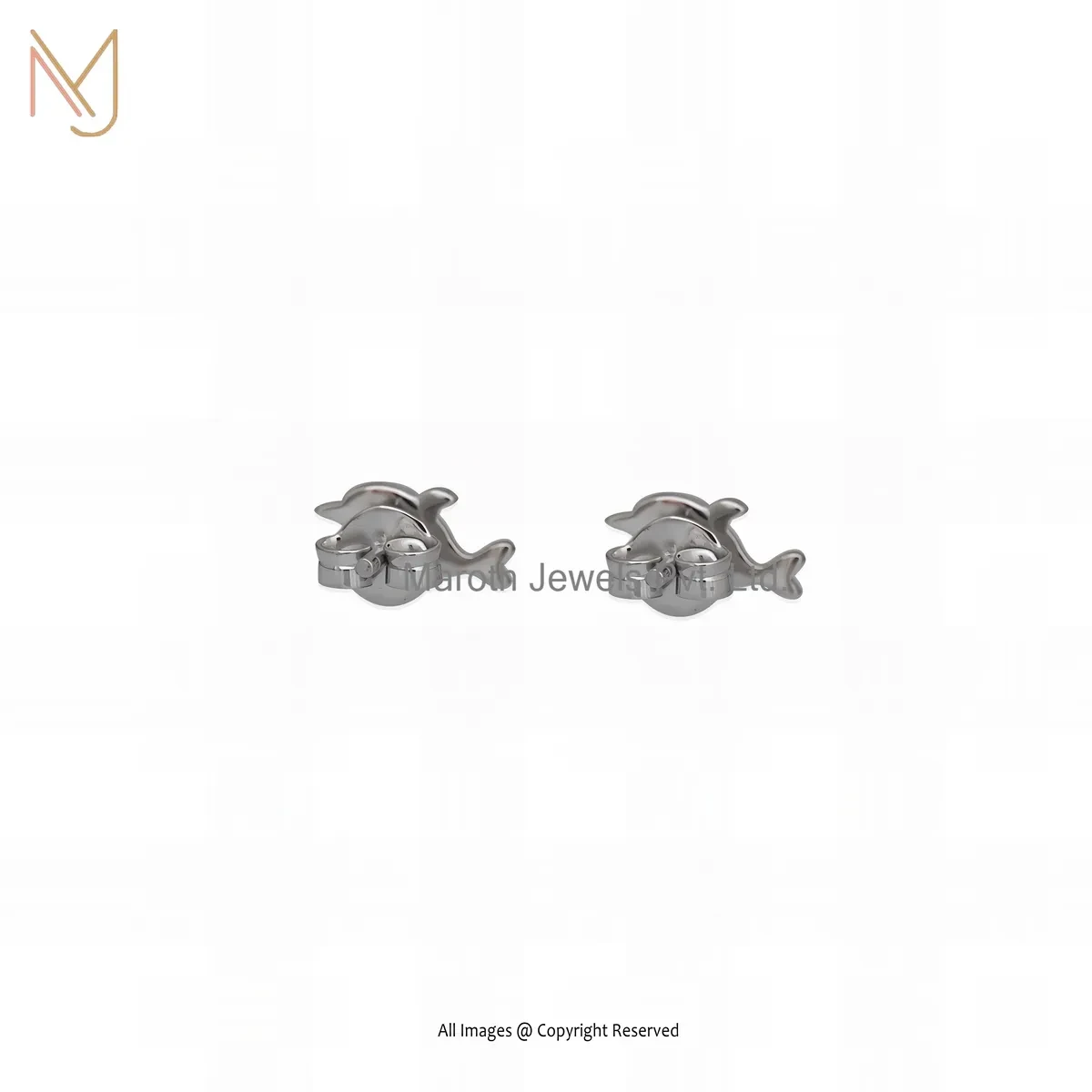 925 Silver Yellow Gold Plated Cubic Zircon Dolphin Stud Earring Custom Jewelry