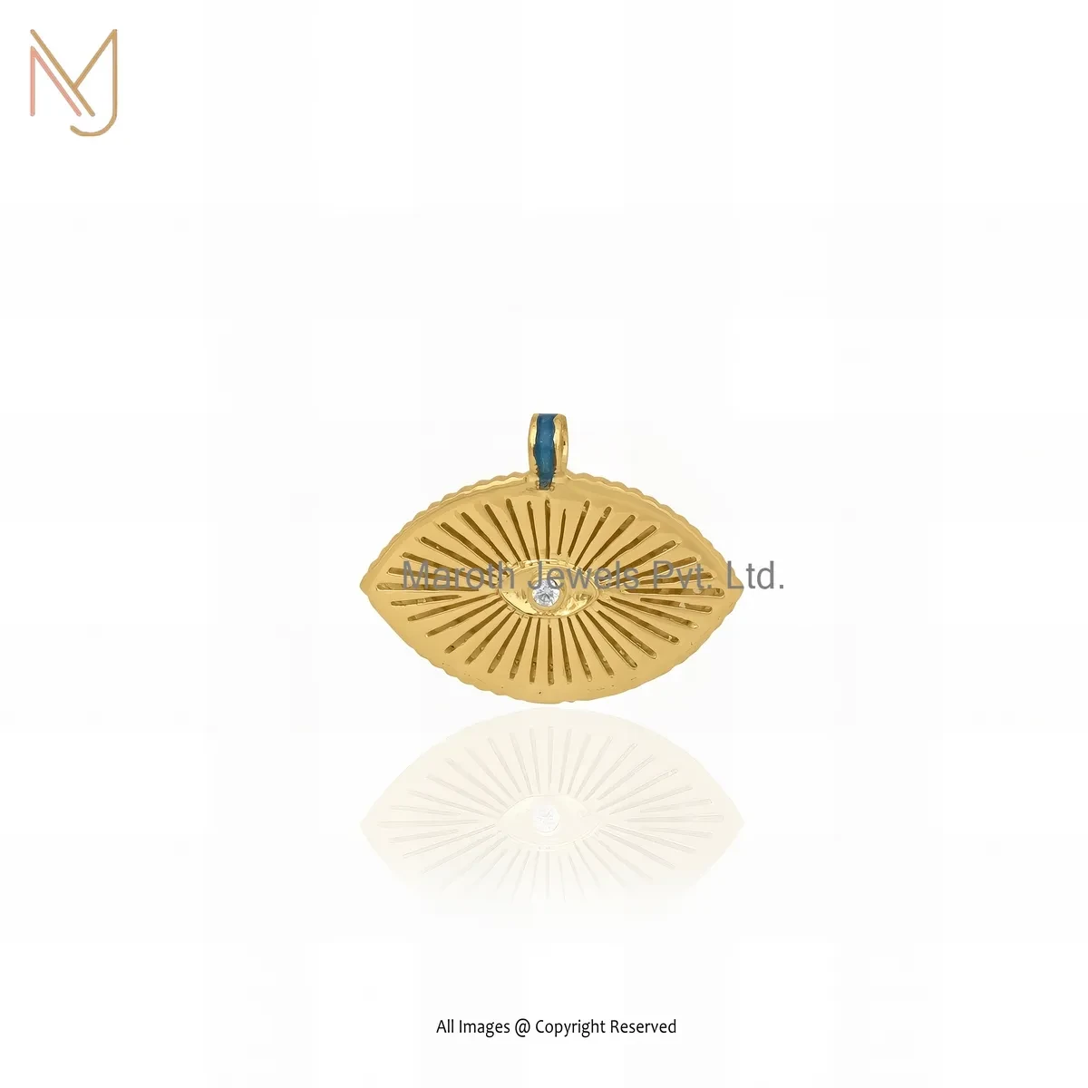 925 Silver Yellow Gold Plated Cubic Zircon & Enamel Evil Eye Charm Pendant Custom Jewelry