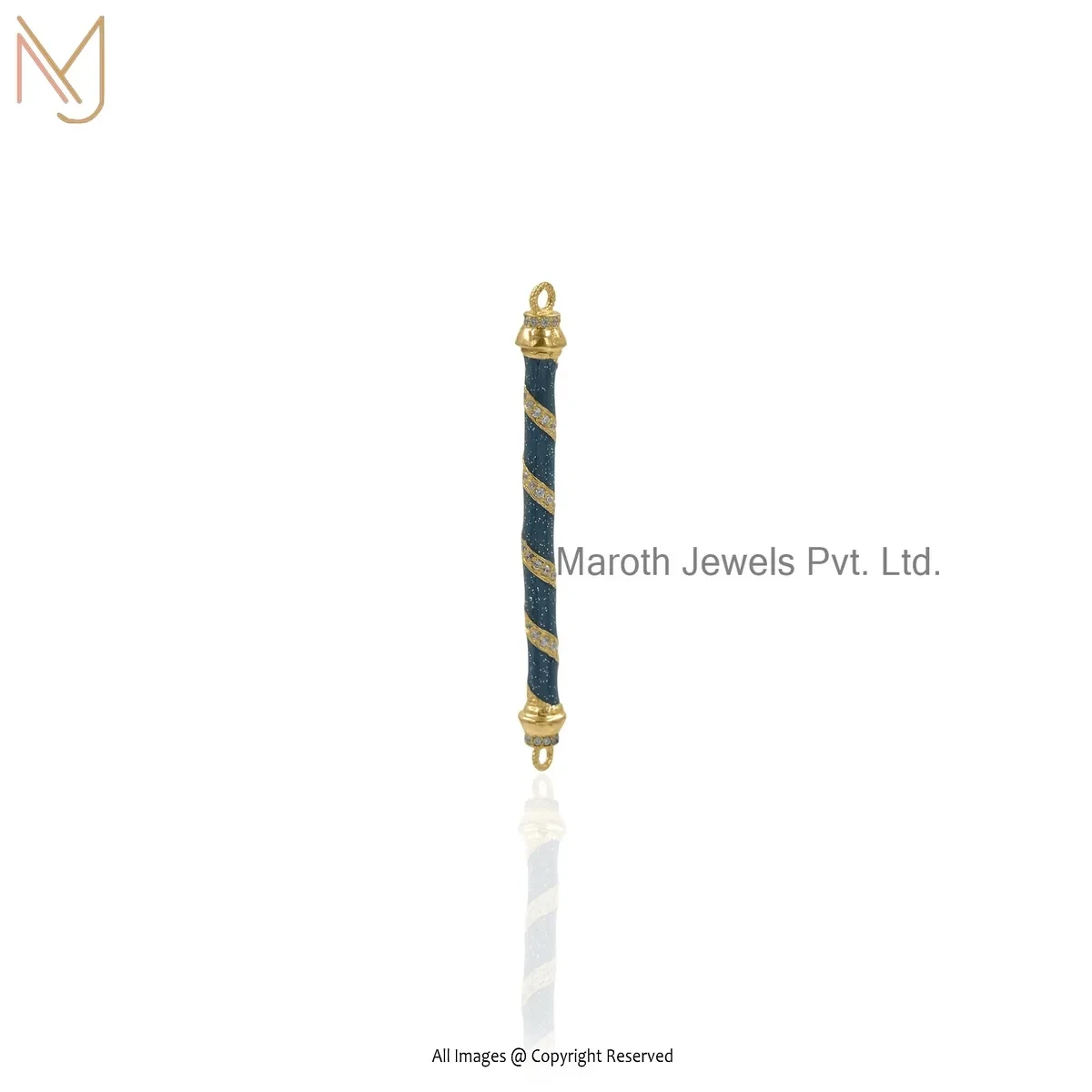 925 Silver Yellow Gold Plated Cubic Zircon & Enamel Gemstone Candy Cane Pendant Manufacturer
