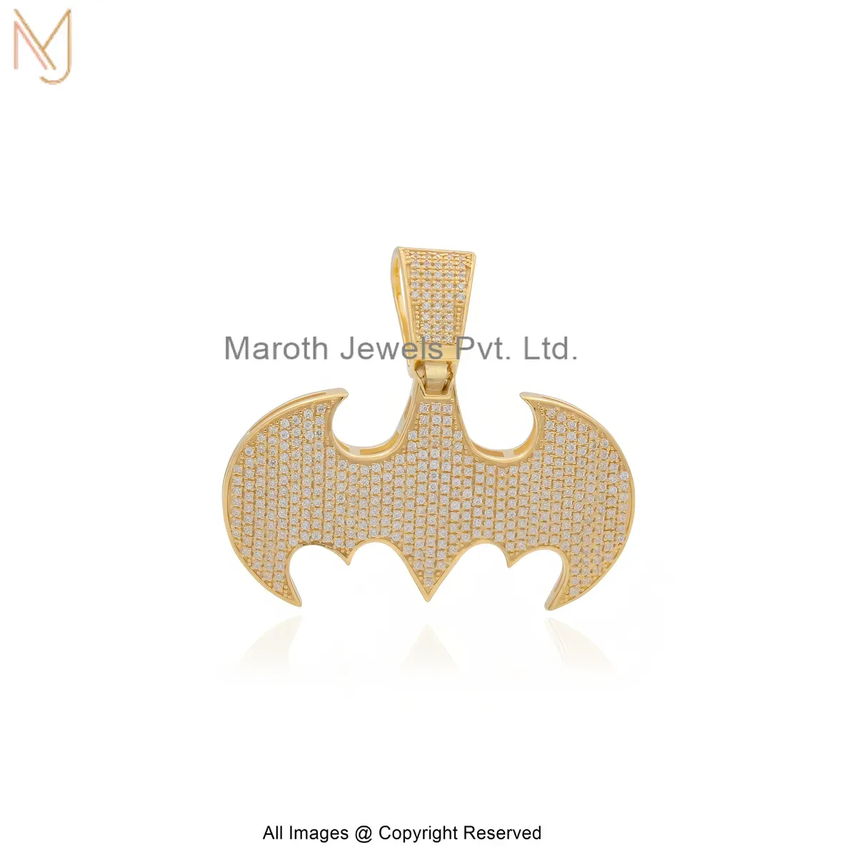 925 Silver Yellow Gold Plated Cubic Zircon Iced-Out Batman Diamond Pendant Manufacturer