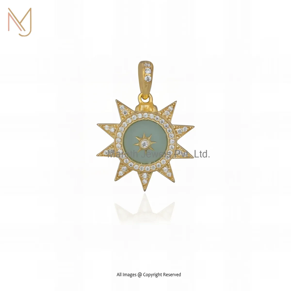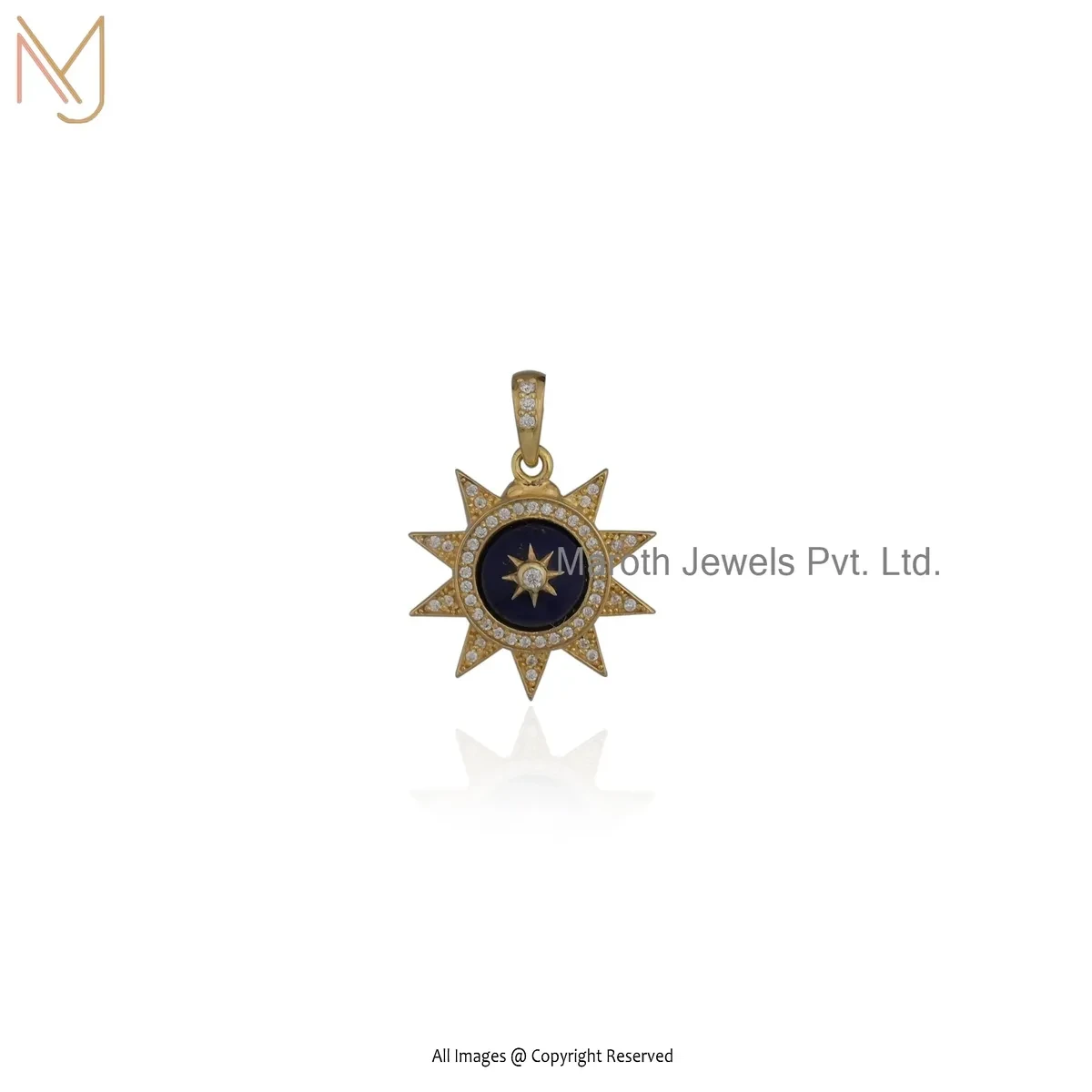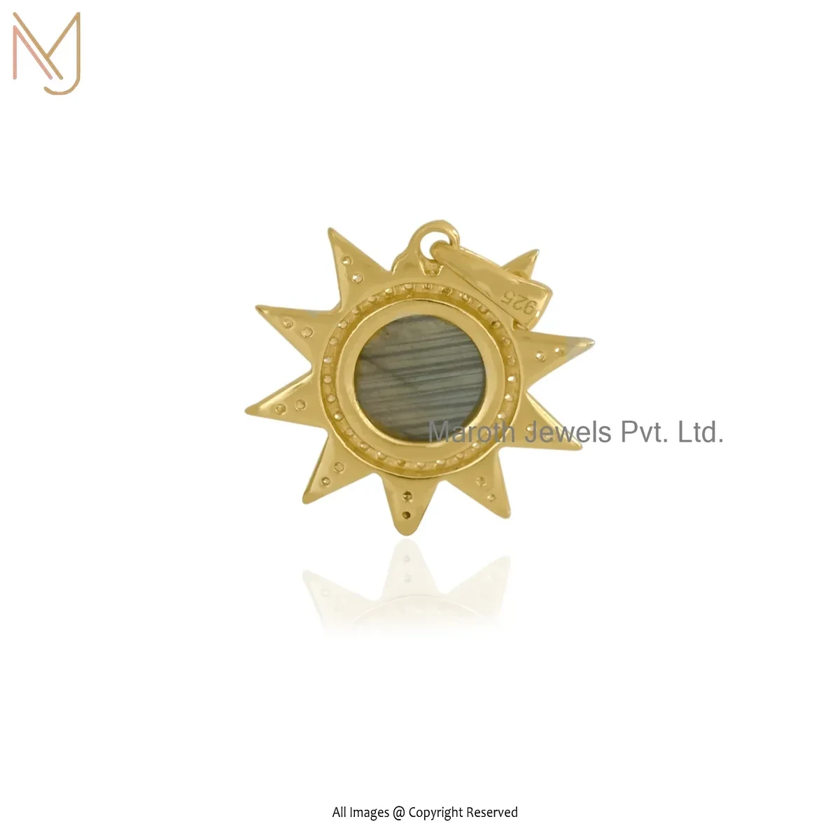 925 Silver Yellow Gold Plated Cubic Zircon & Labradorite Star Charm Pendant Jewelry Supplier