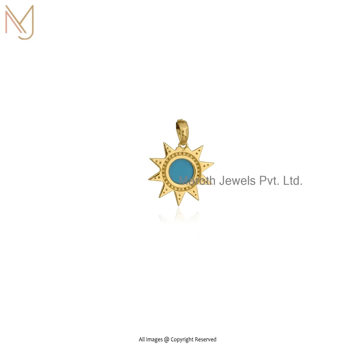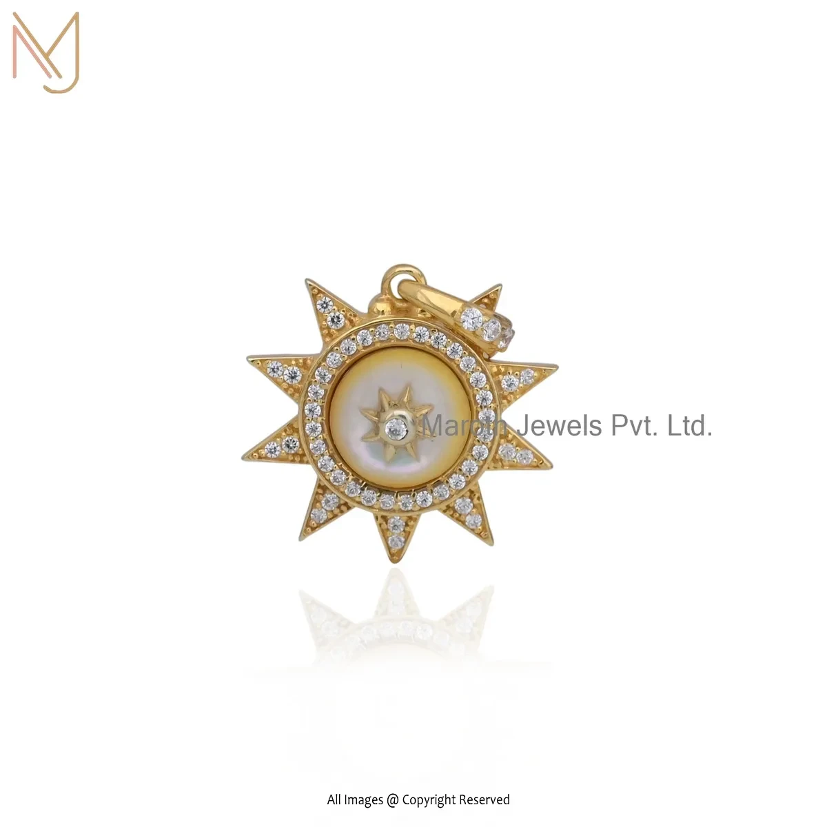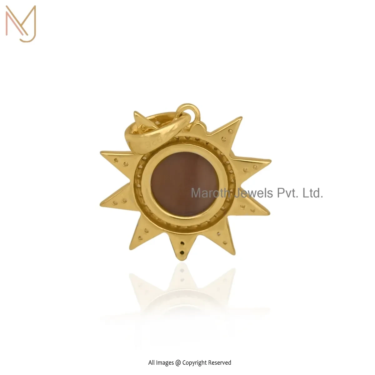 925 Silver Yellow Gold Plated Cubic Zircon & Labradorite Star Charm Pendant Jewelry Supplier