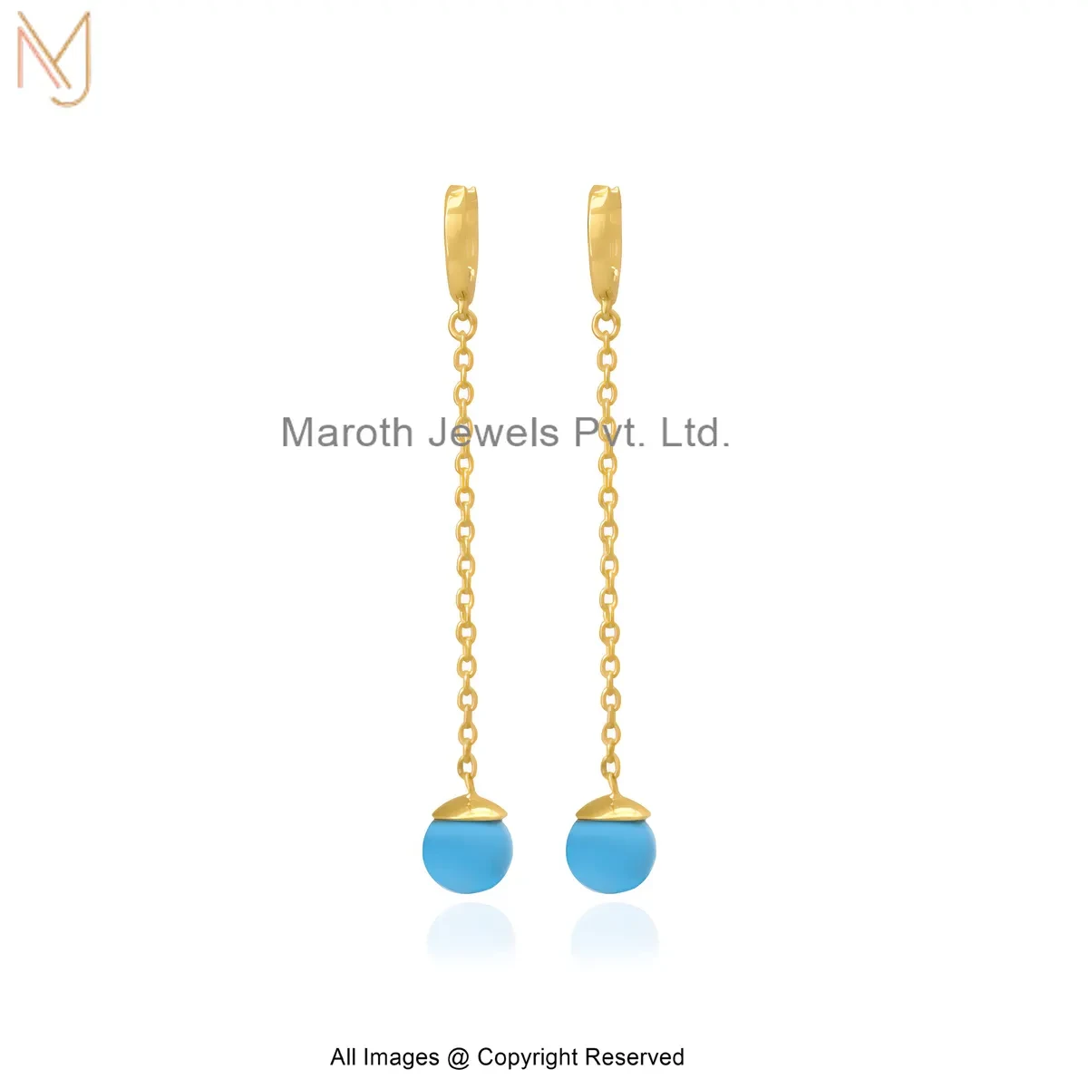 925 Silver Yellow Gold Plated Cubic Zircon Minimal Turquoise Chain Drop Earring Jewelry Supplier
