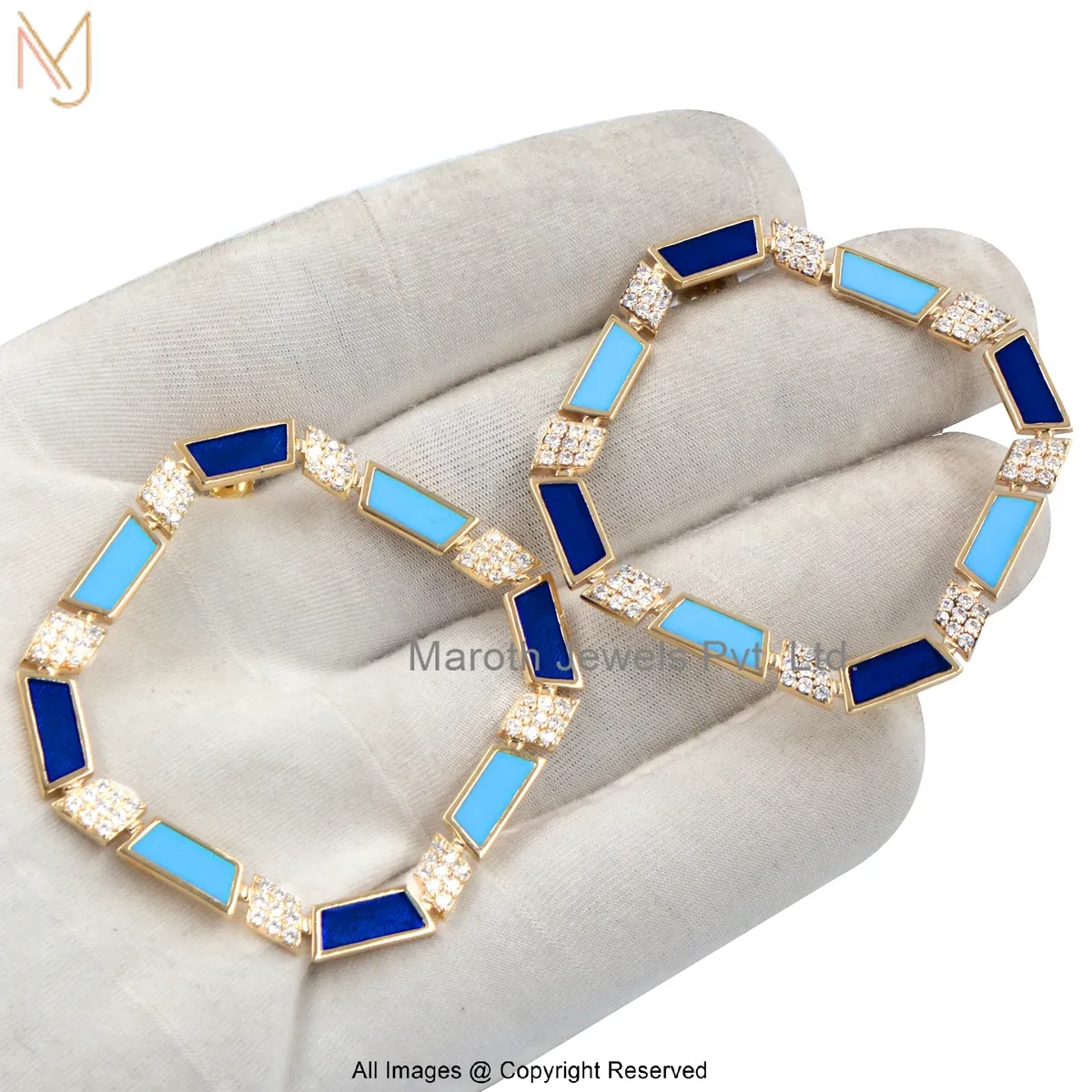 925 Silver Yellow Gold Plated Cubic Zircon Multi Enamel Drop Earring Jewelry Supplier