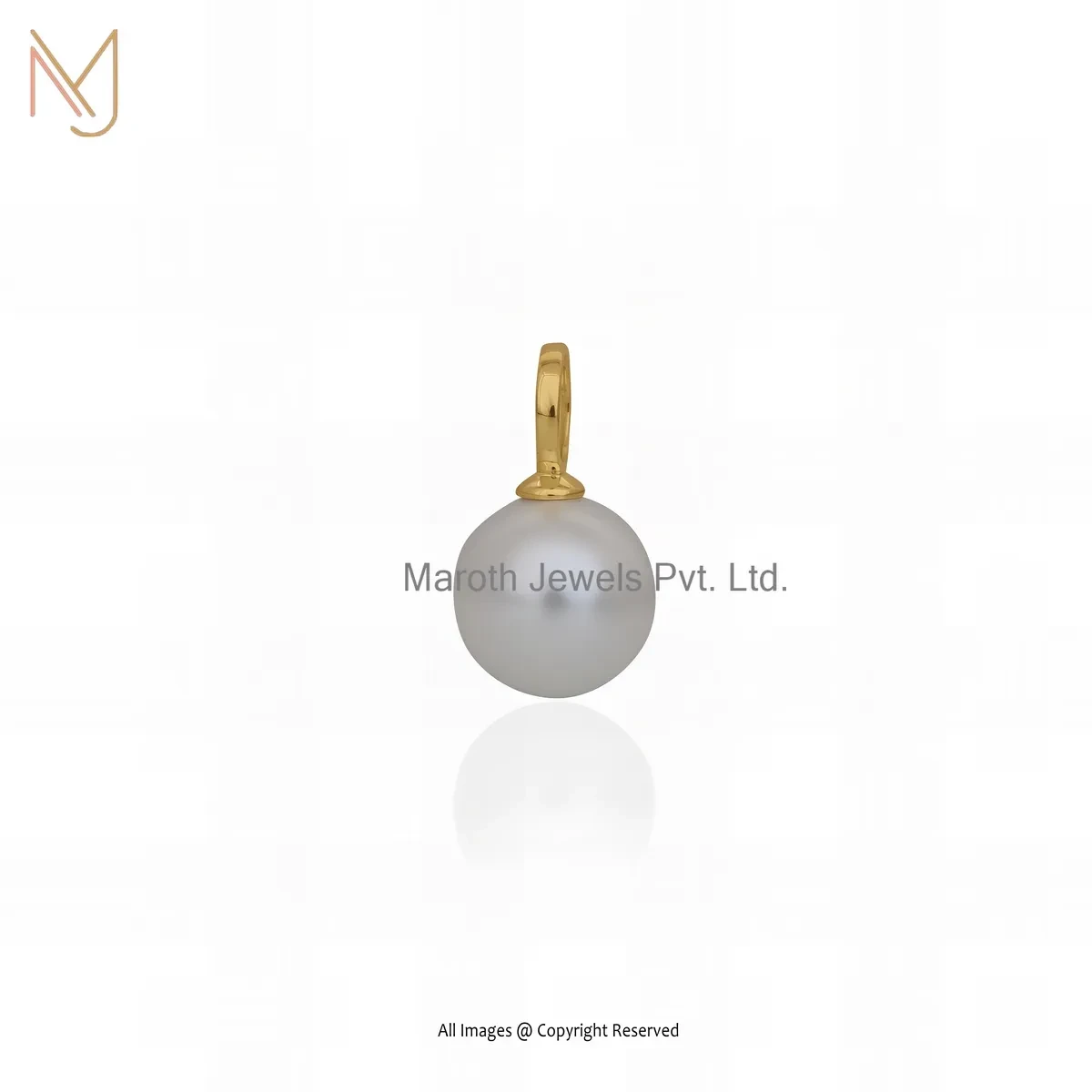 925 Silver Yellow Gold Plated Cubic Zircon & Pearl Ball Pendant Custom Jewelry
