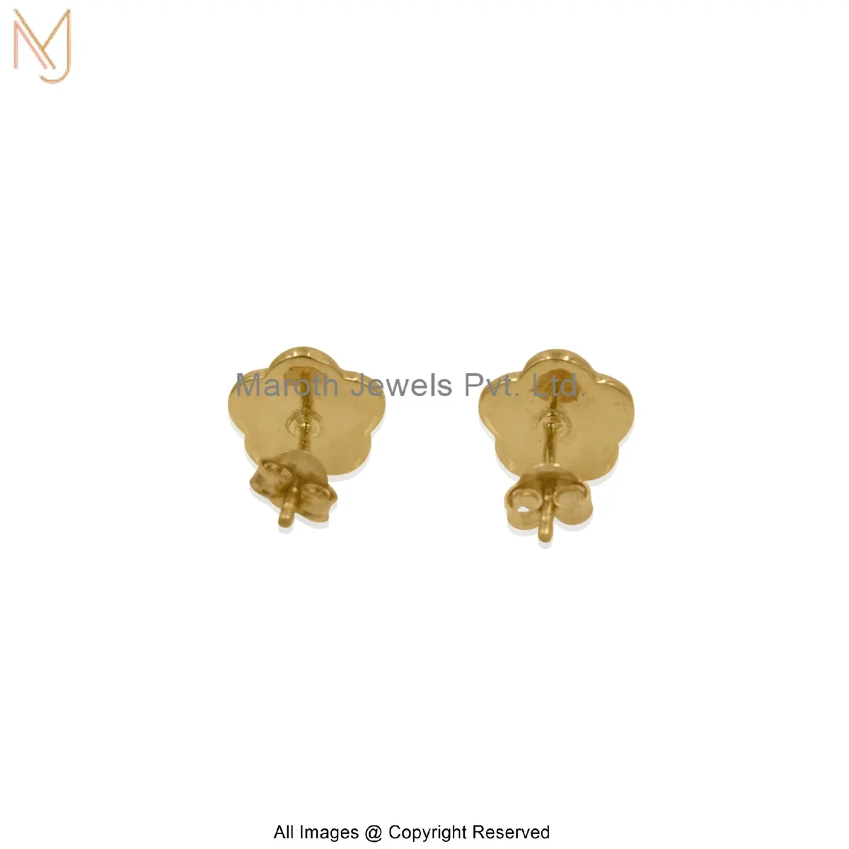925 Silver Yellow Gold Plated Cubic Zircon Pink Enamel Flower Stud Earring Manufacturer