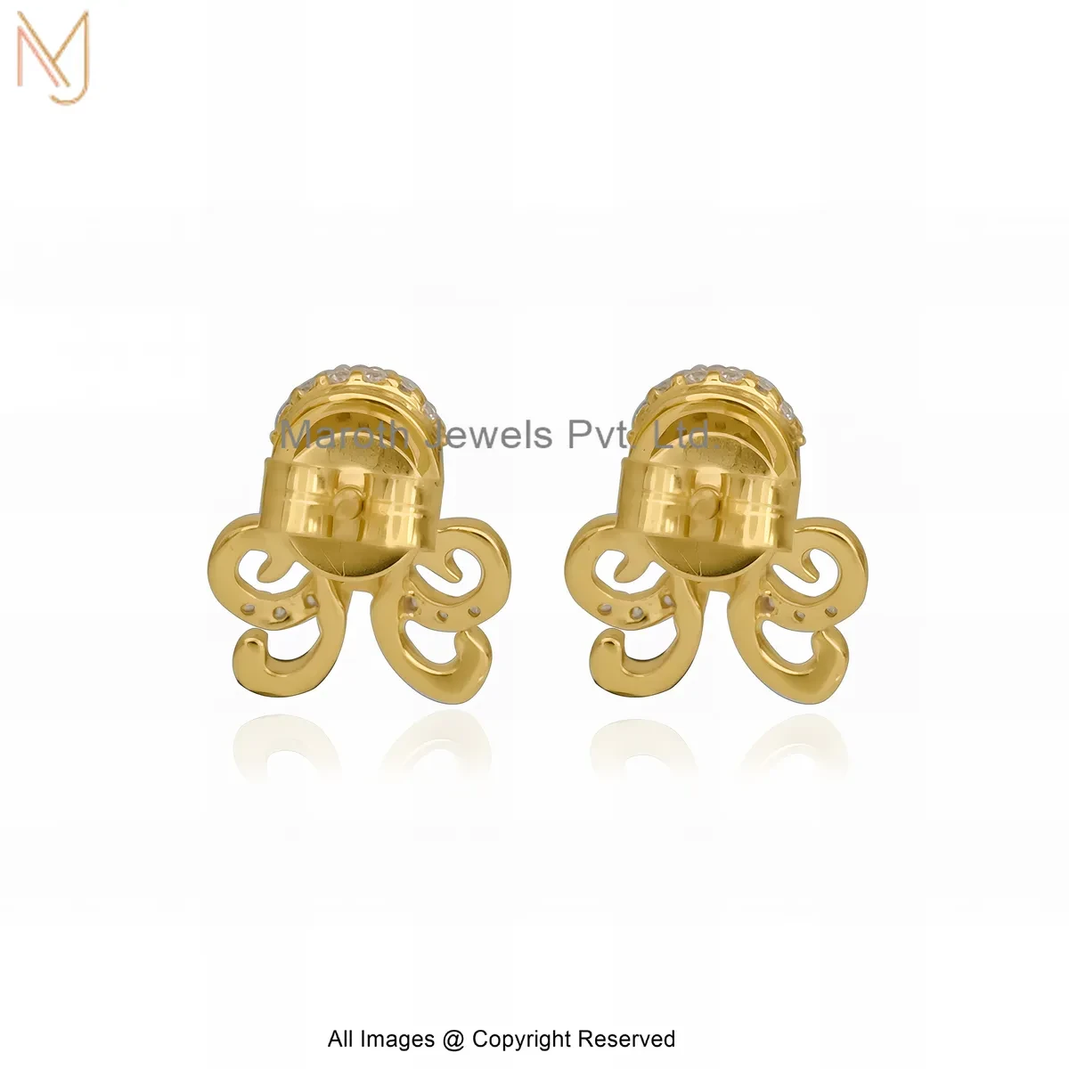 925 Silver Yellow Gold Plated Cubic Zircon Royal Octopus Diamond Stud Earrings Manufacturer