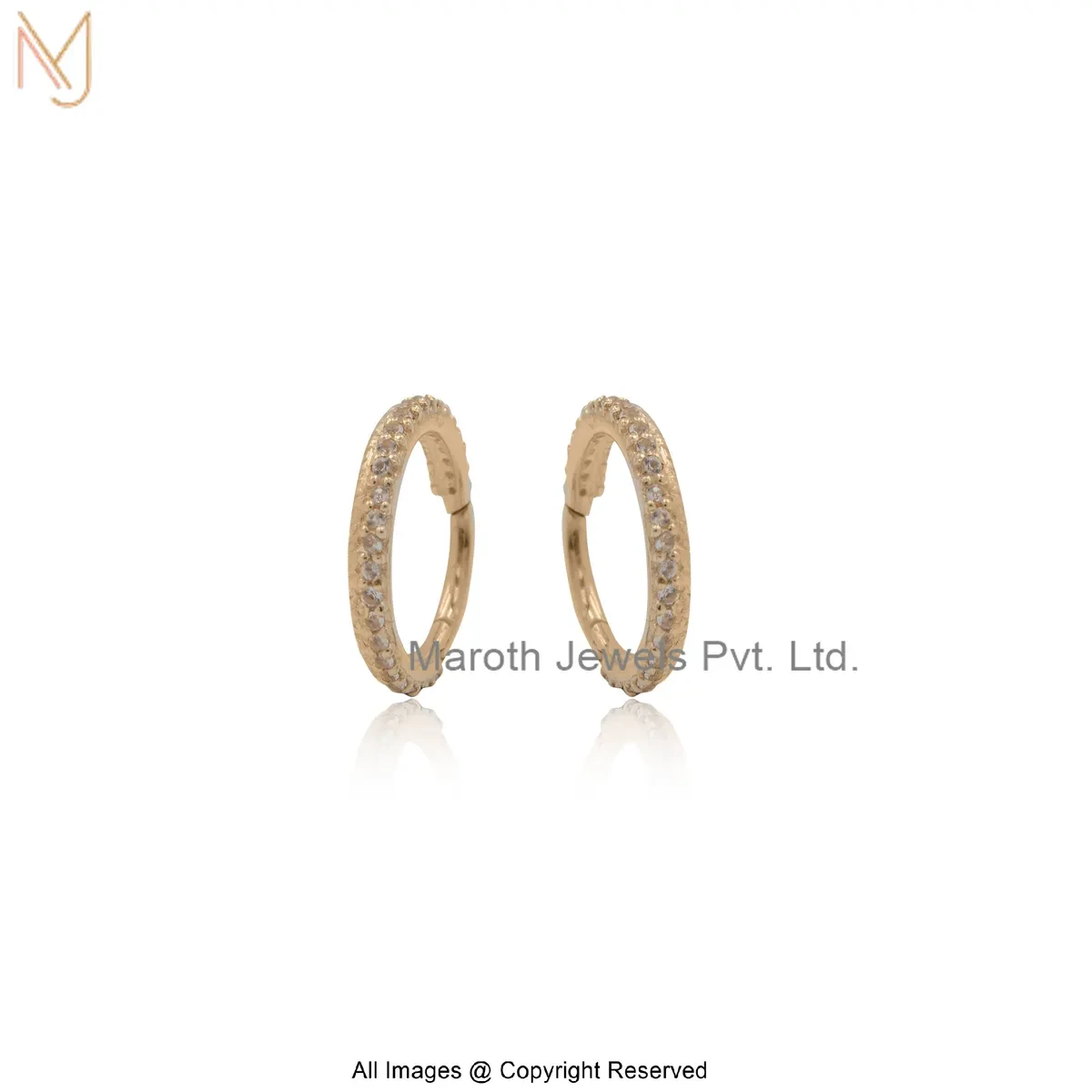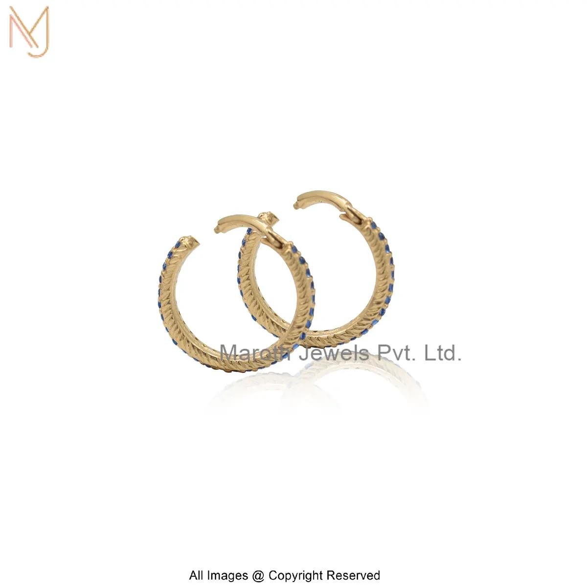 925 Silver Yellow Gold Plated Diamond Cubic Zircon Gemstone Hoop Earring Manufacturer