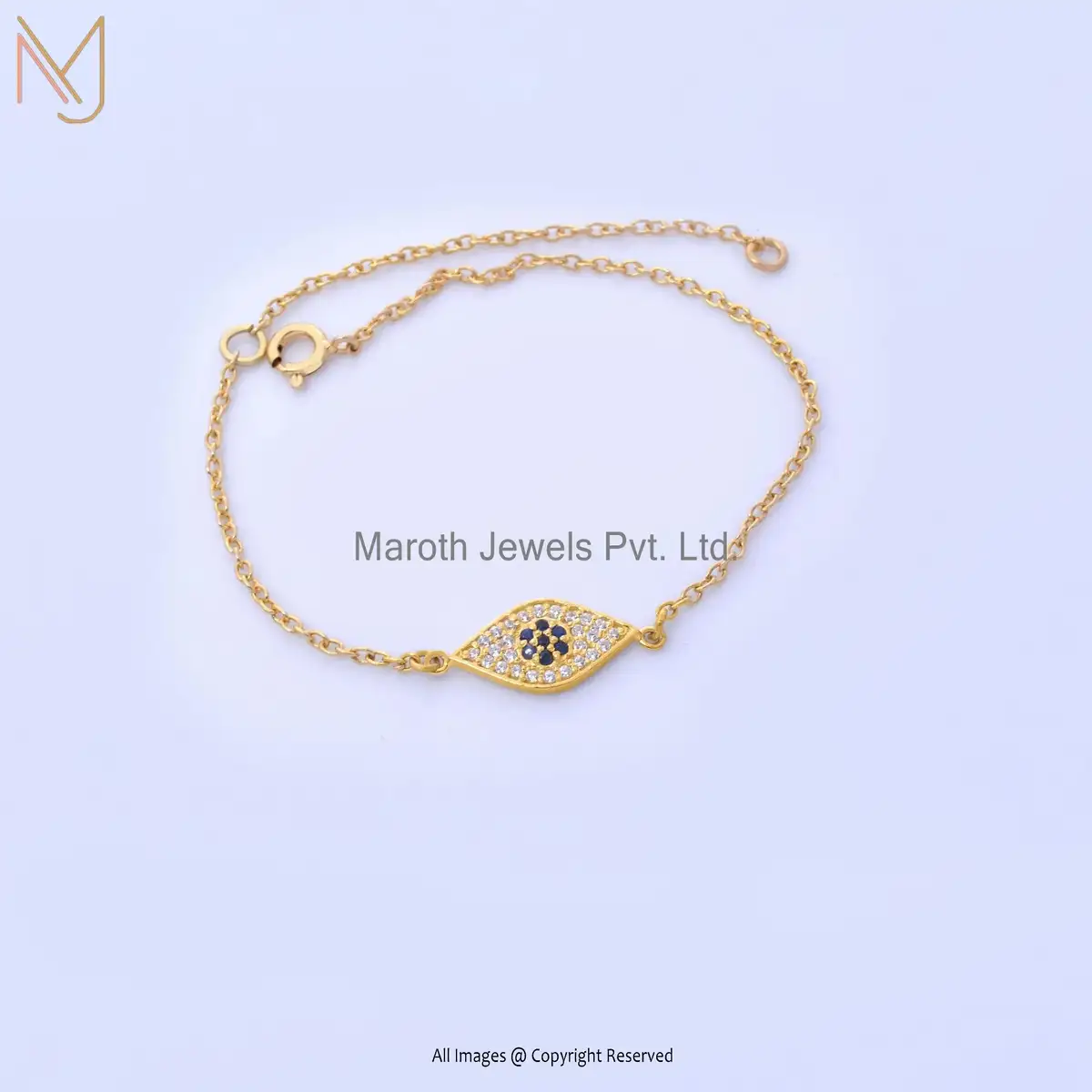 925 Silver Yellow Gold Plated Evil Eye Blue & White Cubic Zircon Chain Bracelet USA