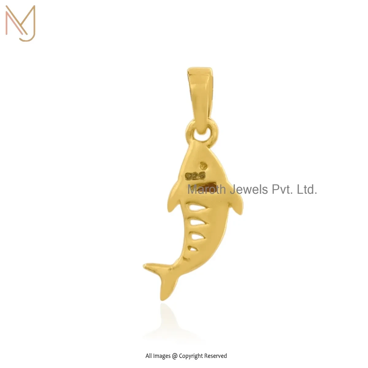 925 Silver Yellow Gold Plated Garnet Fish Bone Pendant Jewelry Supplier