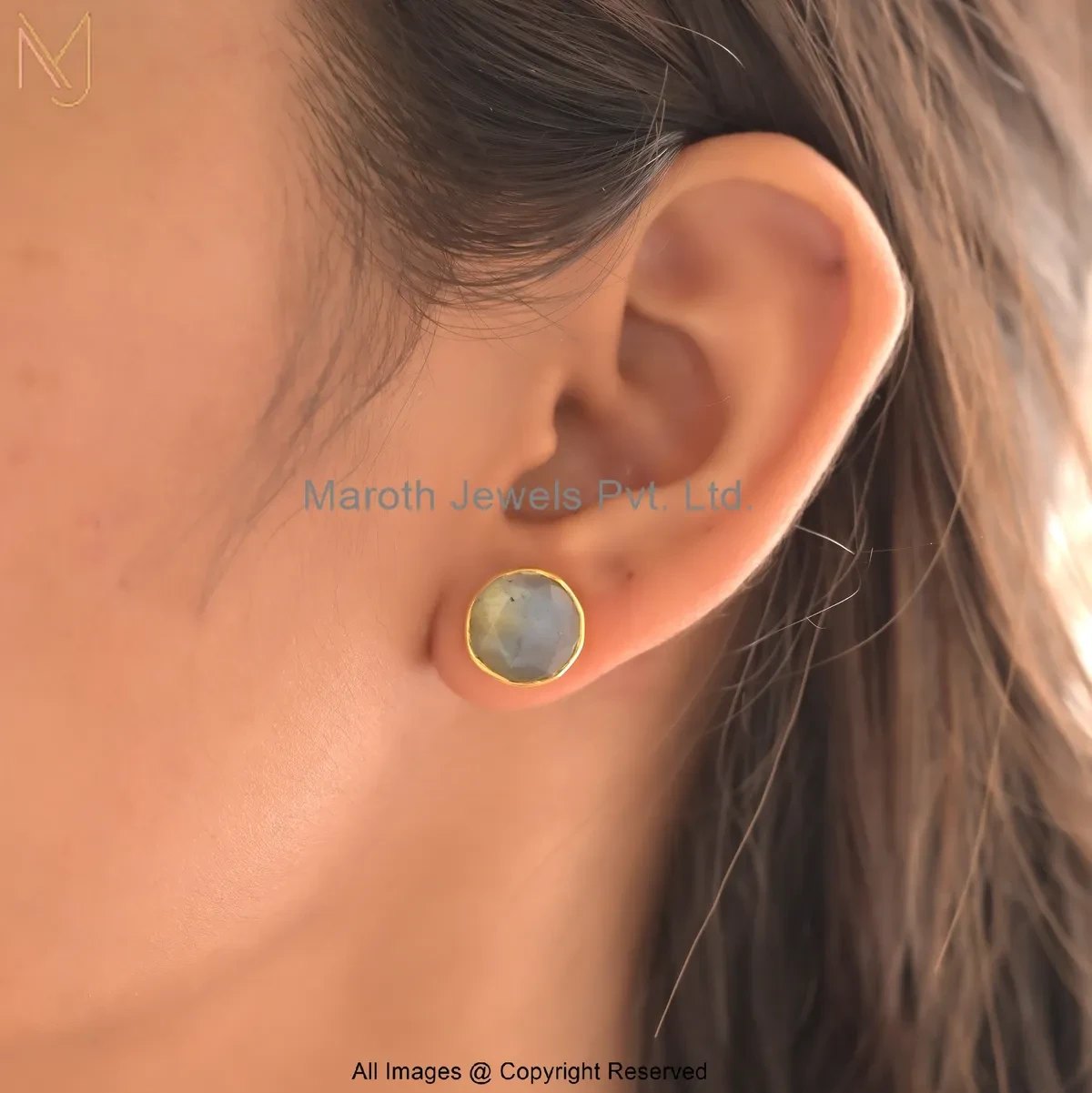 925 Silver Yellow Gold Plated Gemstone Mystic Blue Glow Round Stud Earrings Manufacturer