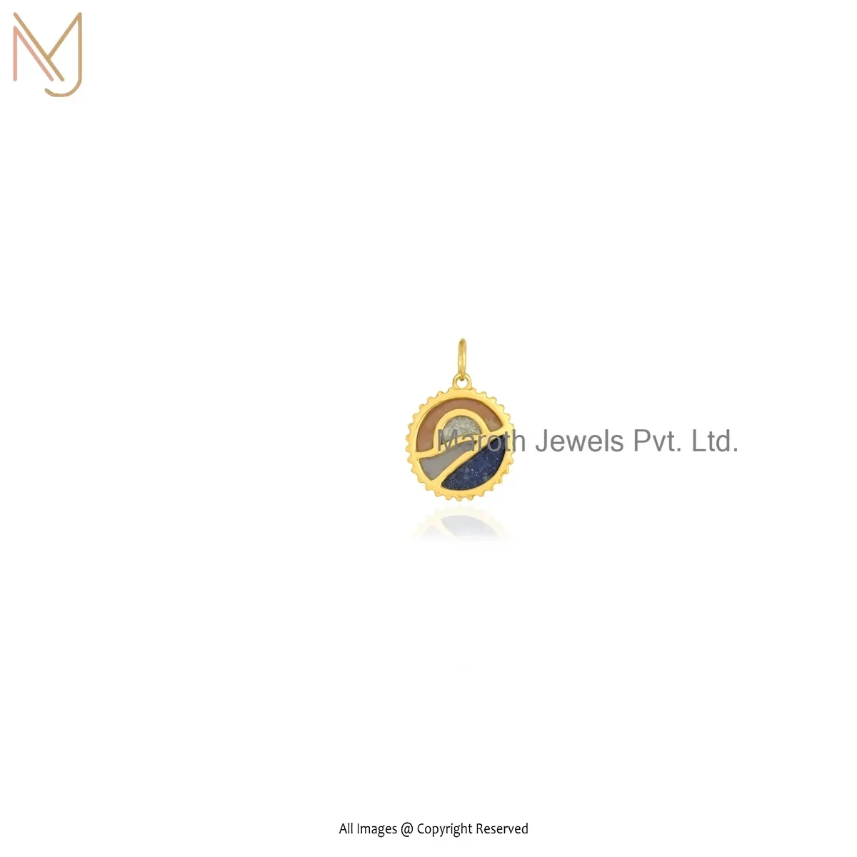 925 Silver Yellow Gold Plated Gemstone Round Disc Pendant Manufacturer