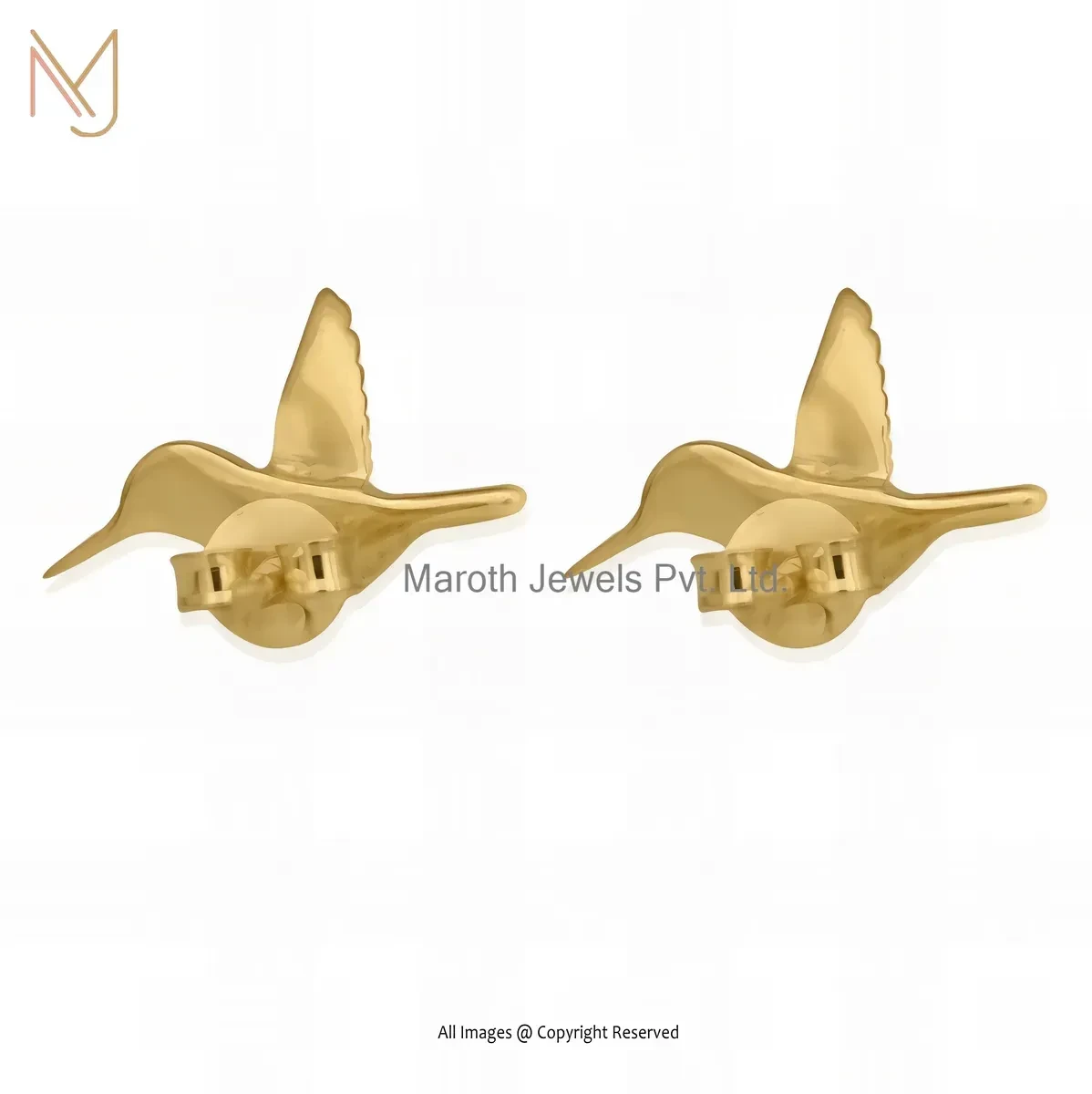 925 Silver Yellow Gold Plated Hummingbird Stud Earrings Jewelry Supplier