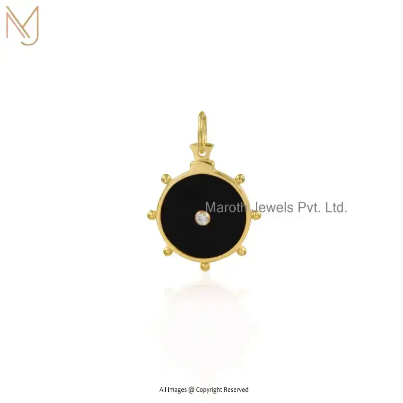 925 Silver Yellow Gold Plated Lapiz Lazuli & Cubic Zircon Minimalist Round Pendant Custom Jewelry