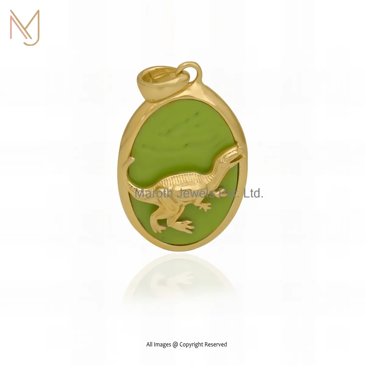 925 Silver Yellow Gold Plated Malachite Dinosaur Pendant Jewelry Supplier