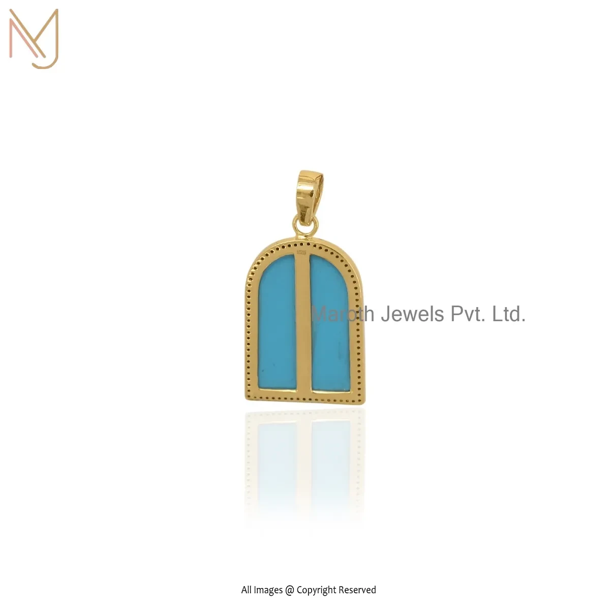 925 Silver Yellow Gold Plated Moissanite & Lapiz Lazuli Gemstone Door Pendant USA