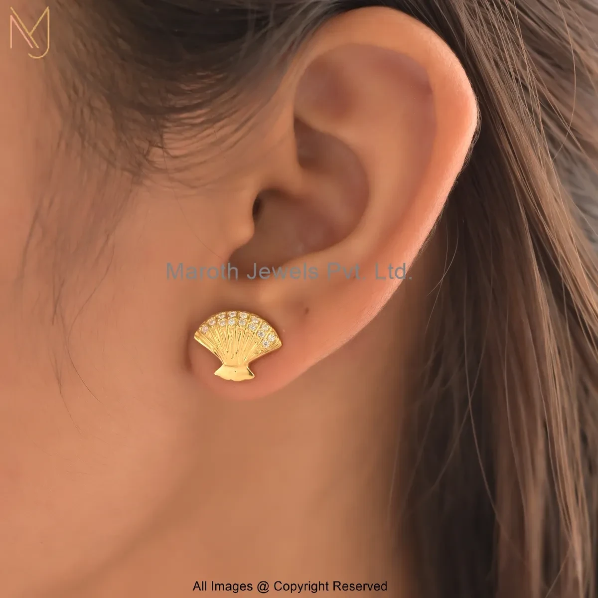 925 Silver Yellow Gold Plated Moissanite Sea Shell Stud Earring Manufacturer