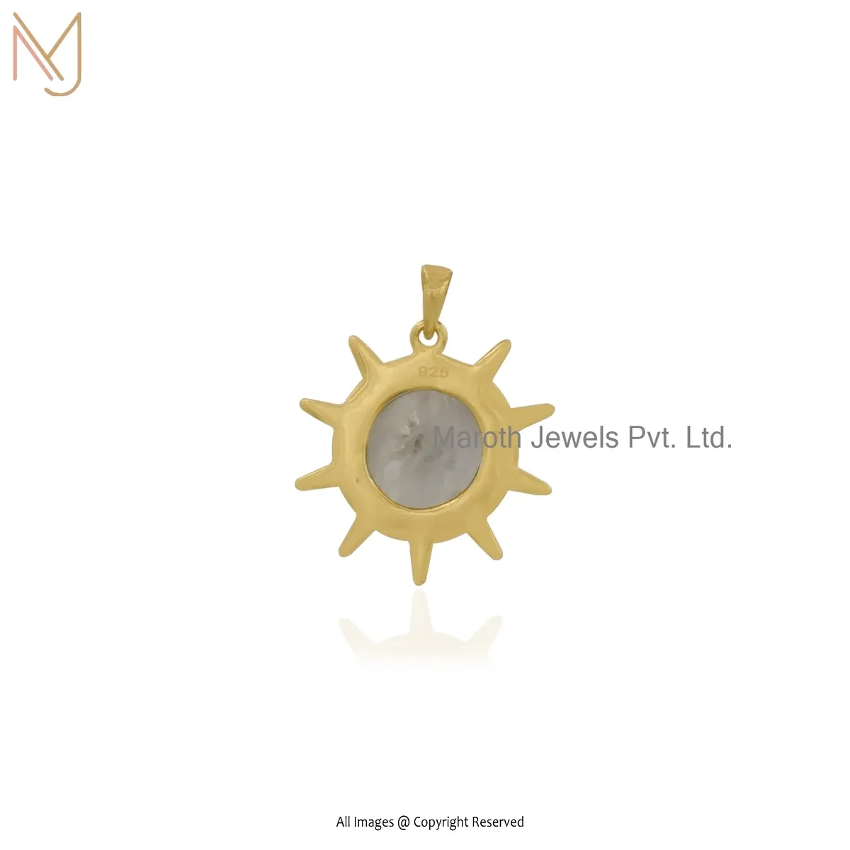 925 Silver Yellow Gold Plated Moonstone Sunburst Disc Pendant Jewelry Supplier