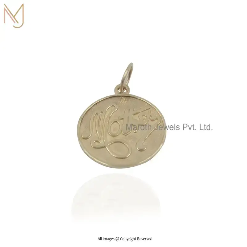 925 Silver Yellow Gold Plated Mother Initials Engraved Disc Pendant USA