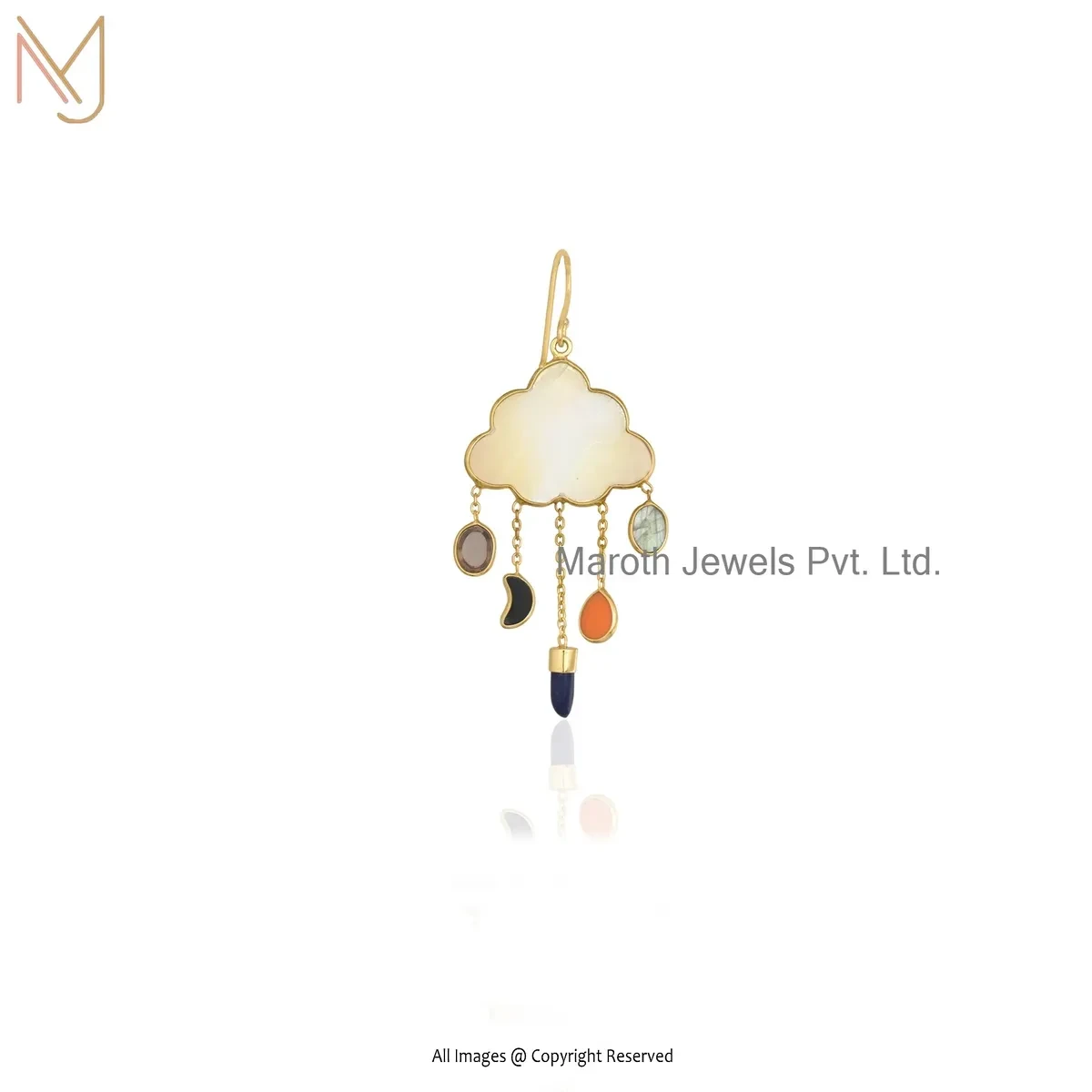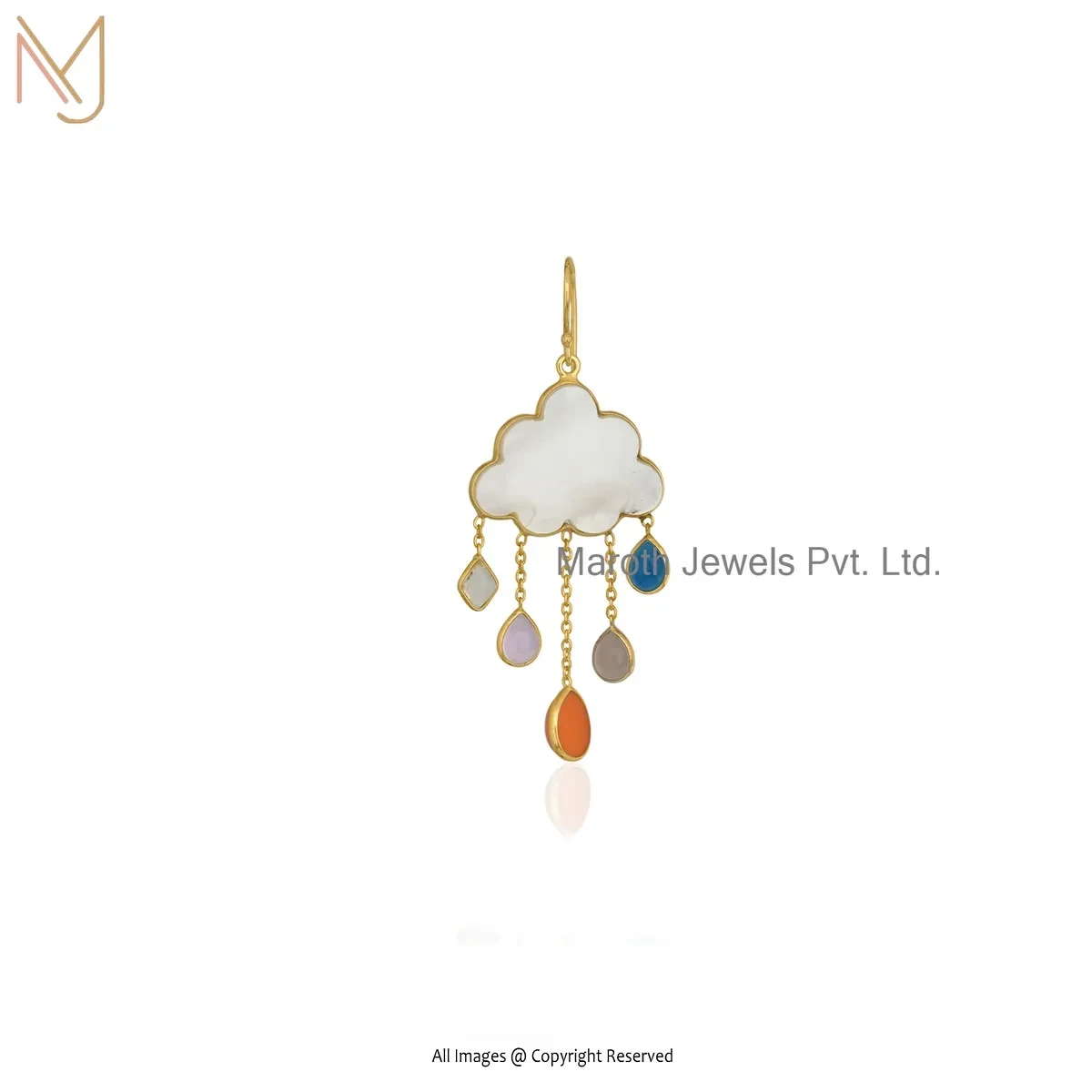 925 Silver Yellow Gold Plated Mother Of Pearl And Multi Gemstone Clouds Earring Manufacturer