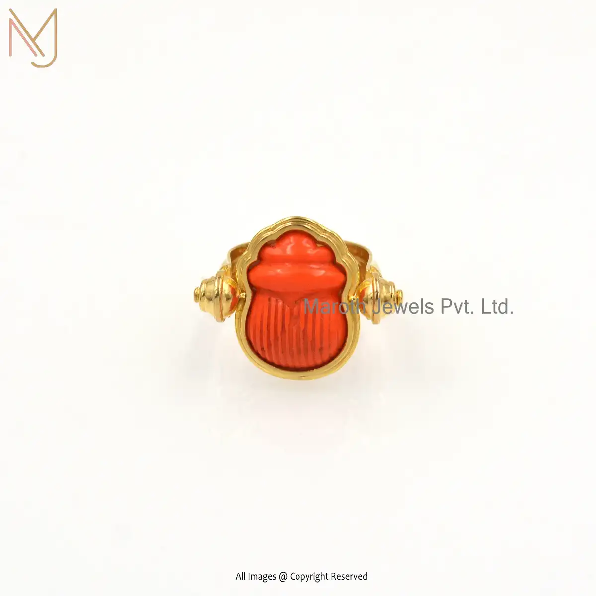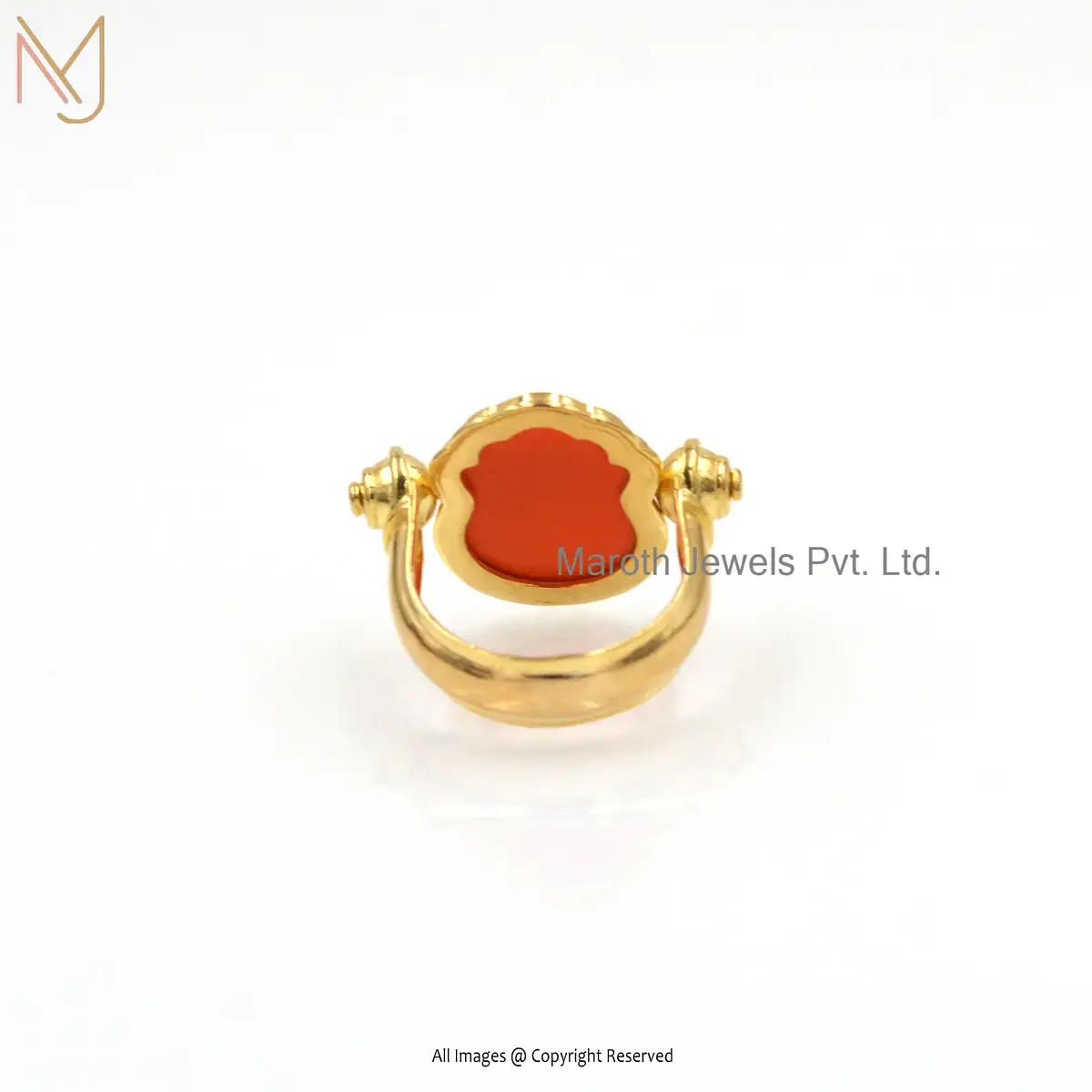 925 Silver Yellow Gold Plated Orange Coral Ring Custom Jewelry