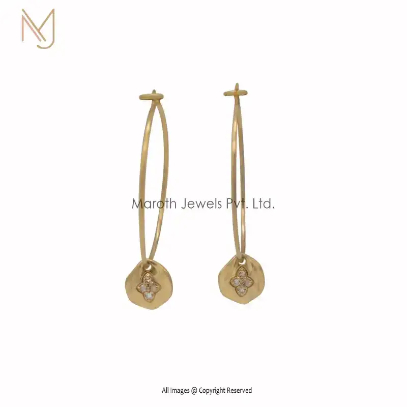 925 Silver Yellow Gold Plated Pave Diamond Hoop Disc Charm Earrings Manufacturer