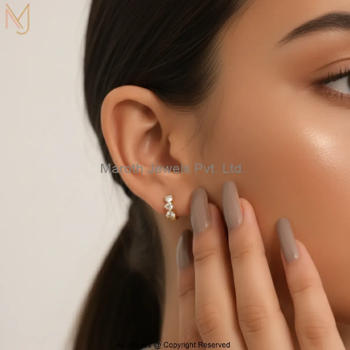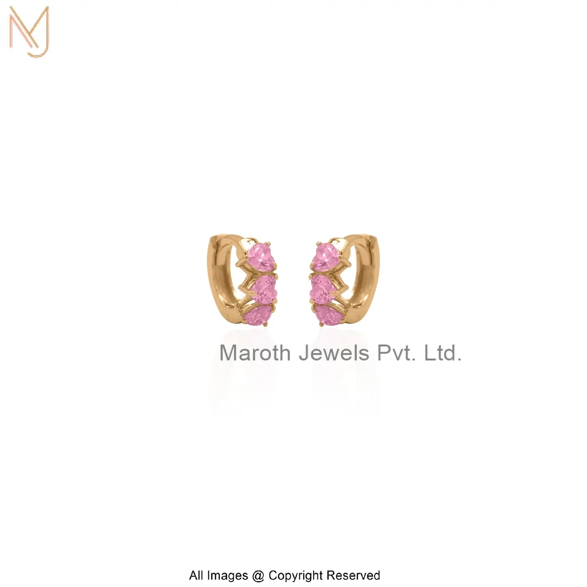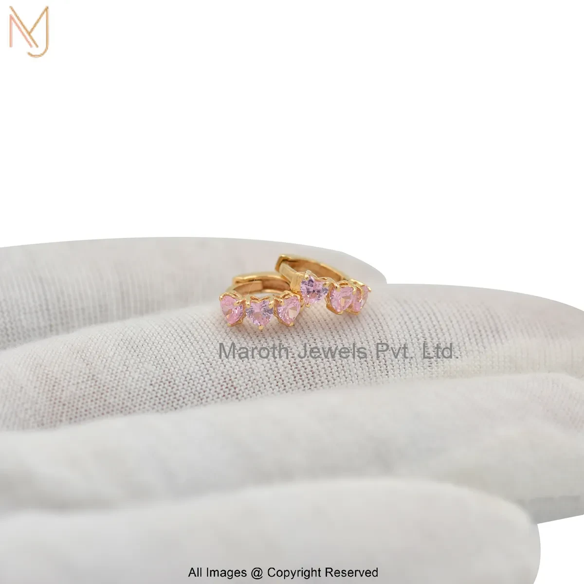 925 Silver Yellow Gold Plated Pink Cubic Zircon Heart Shape Huggies Earring Jewelry Supplier