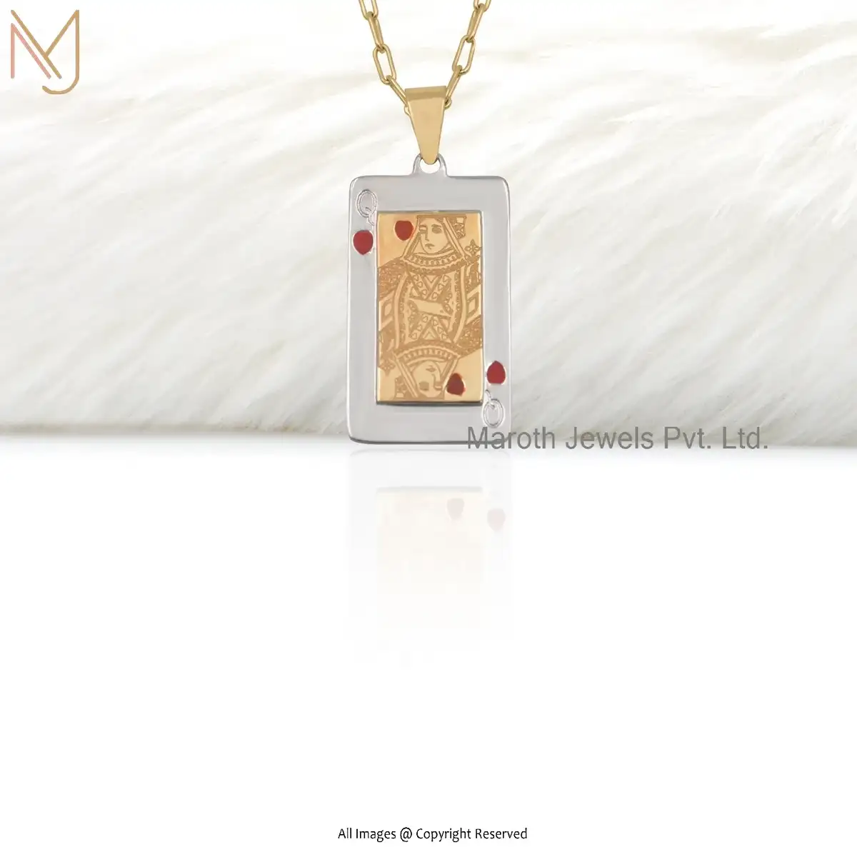 925 Silver Yellow Gold Plated Red Enamel Queen Play Cards Pendant Jewelry Supplier