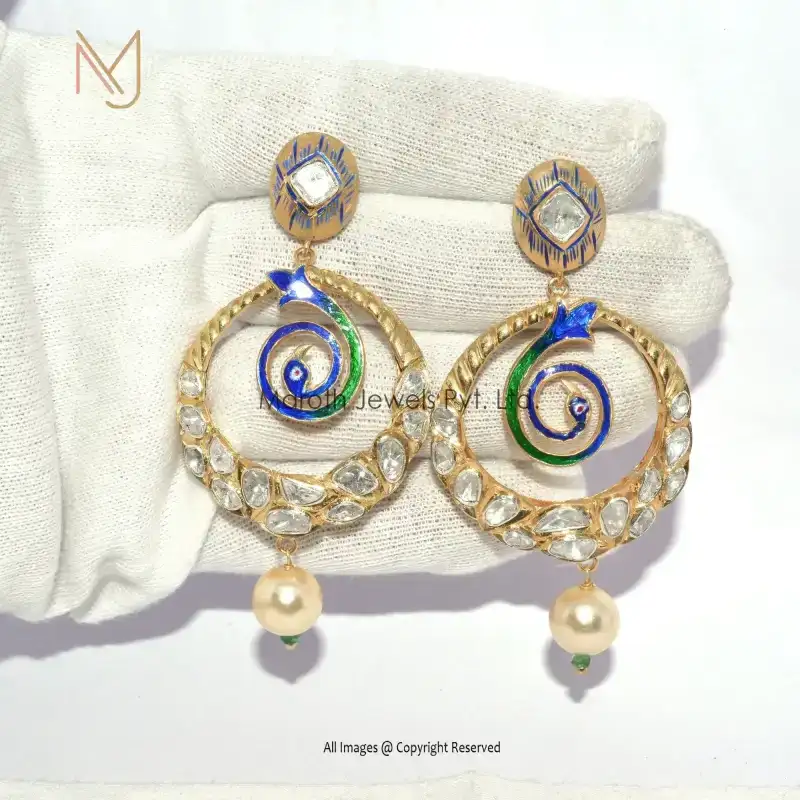 92.5 Silver Yellow Gold Plated Rose Cut Diamond Pearl Gemstone Beads Earrings Custom Jewelry